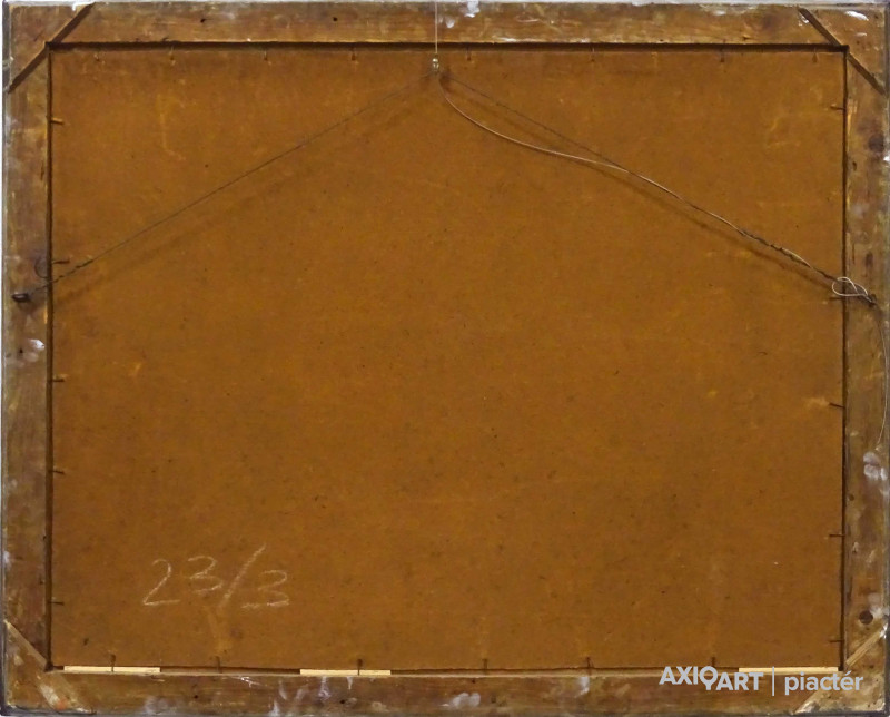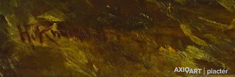 [FK3264/FL-4] A kép mérete: 31,5 x 70,5 cm keret nélkül. Készült: Olaj, tempera, Farostlemez A kép Kurucz D. István (Hódmezővásárhely, 1914, Budapest, 1996) alkotása. Jelezve Jobbra lent "Kurucz 977" A festmény jó állapotban van. Keret: Ép A festmény hátoldalán a Képcsarnokvállalat raglapja látható. Magyar festők és grafikusok életrajzi lexikona I-II. Festő, grafikus. Vásárhelyről, ahol Darvasy István festőművész figyelt fel tehetségére, került Szőnyi István magániskolájába. A fővárosi Képzőművészeti Főiskolának, ahol Rudnay Gyula, Réti István, Benkhard Ágost, Szőnyi István voltak a tanítómesterei 1940-ig volt a tanítványa. A monumentális festészetet Nagy Sándor tanította. Tanulmányúton járt több kelet- és nyugat-európai államban, Mongóliában, Japánban, Algériában. 1940-ben Hódmezővásárhelyen telepedett le, 1943-1947 között bekapcsolódott szülővárosa művészeti és közéletébe. A Vásárhely Népe c. lap munkatársa volt. 1949-59 között Szőnyi tanársegédjeként freskótechnikát tanított a főiskolán. 1951-52-ben megszervezte a Honvédségi Képzőművészeti Stúdiót, majd kinevezték a Honvéd Képzőművészeti Iskola igazgatójának. A vásárhelyi iskola reprezentáns egyéniségeként jelentős szerepe volt a Vásárhelyi Őszi Tárlatok elindításában. Megszervezete és vezette a Mednyánszky Társaságot, s haláláig művészeti vezetője volt a Hajdúböszörményi Nemzetközi Művésztelepnek. Évekig elnöke volt a Hortobágyi Alkotótábornak. Az alföldi parasztok életét megörökítő képei a falképek összefoglaló stílusában a népi realizmus és a dekoratív sommázás szellemében készültek. Számos falképet festett (Kossuth Akadémia, hódmezővásárhelyi iskola, stb.). 1941-től számos kisebb-nagyobb egyéni kiállítása volt, bemutatkozott több hazai és külhoni városban. 1941-től minden jelentősebb országos rendezvény és a magyar művészek külföldi bemutatóinak résztvevője. Rendszeresen szerepelt a Vásárhelyi Őszi Tárlatokon, a Hatvani Tájkép és Portrébiennálékon, a Szegedi Nyári Tárlatokon. Képei bemutatásra kerültek a vásárhelyi iskola jubileumi rendezvényein. 1962-ben több alkotásával szerepelt a Velencei Biennálén. Díjak: SZOT-díj, Munkácsy-díj, Érdemes és Kiváló Művész kitüntetés, Tornyai-plakett, római ösztöndíj, a Munka Érdemrend arany fokozata, Káplár Miklós-díj és emlékplakett, Kossuth-díj. Művei megtalálhatók minden jelentősebb hazai, több olasz és japán közgyűjteményben. (ML, D.J.: Műv. 1985/5, Tasnádi Attila adatközlése nyomán, L.L.: Műv. 1983/3) Magyar festők és grafikusok életrajzi lexikona I-II. Műgyűjtők és kereskedők kézikönyve Festő, grafikus. Vásárhelyről, ahol Darvasy István festőművész figyelt fel tehetségére, került Szőnyi István magániskolájába. A fővárosi Képzőművészeti Főiskolának, ahol Rudnay Gyula, Réti István, Benkhard Ágost, Szőnyi István voltak a tanítómesterei 1941-ig volt a növendéke. A monumentális festészetet Nagy Sándor tanította. Egy ideig tanársegédként működött Szőnyi mellett. Több ízben járt Itáliában tanulmányúton. Évekig művészeti vezetője volt a Hajdúböszörményi Nemzetközi Művésztelepnek. Az alföldi parasztok életét megörökítő képei a falképek összefoglaló stílusában a népi realizmus és a dekoratív sommázás szellemében készülnek. A II. világháború alatt szerepet vállalt a Szocialista Képzőművészek Csoportjának akcióiban. 1949-1960 k. a Képzőművészeti Főiskola falképtanszékének tanára volt. Több falképet festett (Kossuth Akadémia, hódmezővásárhelyi iskola, stb.). 1962-ben több alkotásával szerepelt a Velencei Biennálén, SZOT-díjas, Munkácsy-díjas, érdemes és kiváló művész kitüntető elismerésében részesült. (ML, D.J.: Műv.-1985/5, L.L: Műv.-1983/3) Magyar festők és grafikusok adattára Tanulmányait a Képzőművészeti Főiskolán végezte, ahol Rudnay Gyula és Réti István voltak a mesterei. 1941-1943-ban ösztöndíjas Rómában. 1943-1947 között Hódmezővásárhelyen dolgozik, egyidejűleg a Vásárhelyi Hétfő c. hetilap szerkesztője. 1949-1960 közötti években a budapesti Képzőművészeti Főiskola freskó tanszékének tanára. Az 1940-es évek eleje óta kiállító művész. 1962-ben a Velencei Biennálén állították ki műveit. 1970-ben Csók István Galériában volt kiállítása. A Vásárhelyi Őszi Tárlatok és a Szegedi Nyári Tárlatok rendszeres kiállító művésze. Az alföldi festészet egyéni hangú továbbfejlesztője. Táblaképeket, freskókat és kerámia falképeket alkot. Munkácsy-díjas, érdemes és kiváló művész kitüntető elismerésében részesült. A SZOT a legelső képzőművészek közt, 1962-ben tüntette ki díjával. A 70. születésnapját ünneplő művész 1984 decemberében életmű kiállítást rendezett műveiből a hódmezővásárhelyi Tornyai János Múzeumban. 1986-ban a budapesti Hollósy Galériában nyílt kiállítása. - Irod.: Szij Rezső: Kurucz Dezső István festőművész. Bp. 1967.; Kulcsár Ödön: SZOT-díjasok. Bp., 1981.; Lóska Lajos: Mindig freskót szerettem volna festeni. Beszélgetés Kurucz Dezső Istvánnal. Művészet, 1984. 3. Művészeti lexikon I-IV. Festő, Munkácsy-díjas. A Képzőművészeti Főiskolán Rudnay Gyula, Réti István, Benkhard Ágost, Szőnyi István növendéke volt 1934-40 között. Több ízben járt külföldi tanulmányúton. Az alföldi parasztok életét megörökítő képei a falképek összefoglaló stílusában a népi realizmus és a dekoratív sommázás szellemében készülnek. 1949-60 között a Képzőművészeti Főiskola falképtanszékének tanára volt. Több falképet festett (Kossuth Akadémia; Hódmezővásárhely, iskola, pápai pártház, 1965). Legutóbb 195