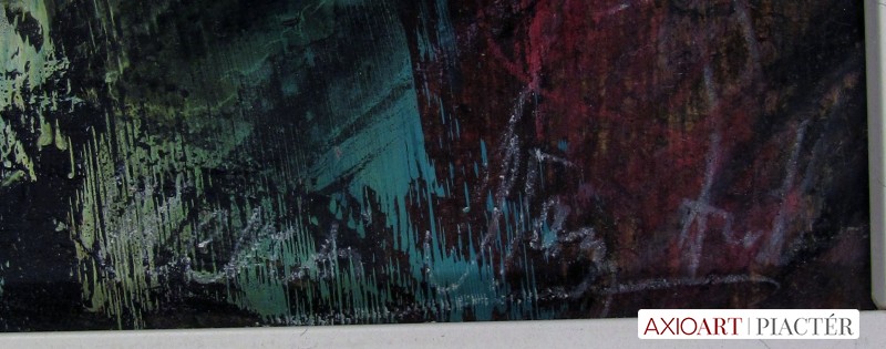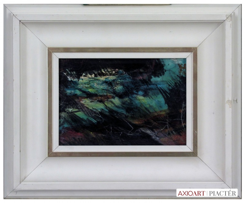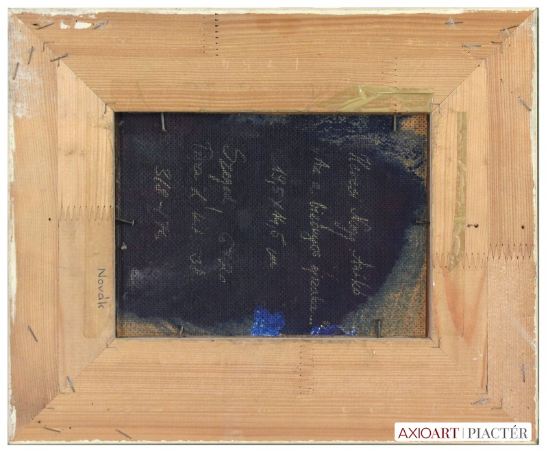 A festmény hátoldalán autográf írással: Hevesi Nagy Anikó "Az a bizonyos éjszaka..." 19,5x14,5 cm, Szeged 6720, Tisza Lajos krt. 38