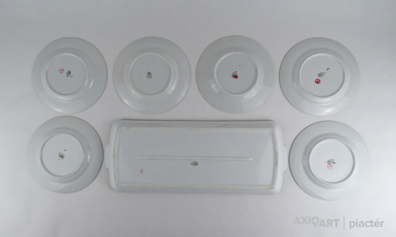 Hibátlan 6 személyes Zsolnay Olíva porcelán süteményes készlet