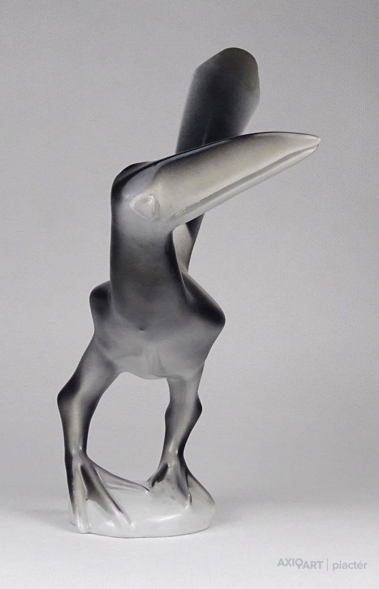 [1P693/X207] Hibátlan állapotú, ritka Hollóházi porcelán madár. Tukán. Art deco forma. Alján jelzés: HOLLÓHÁZA Magasság: 20 cm Szélesség: 17 cm Súly: 0.195 kg