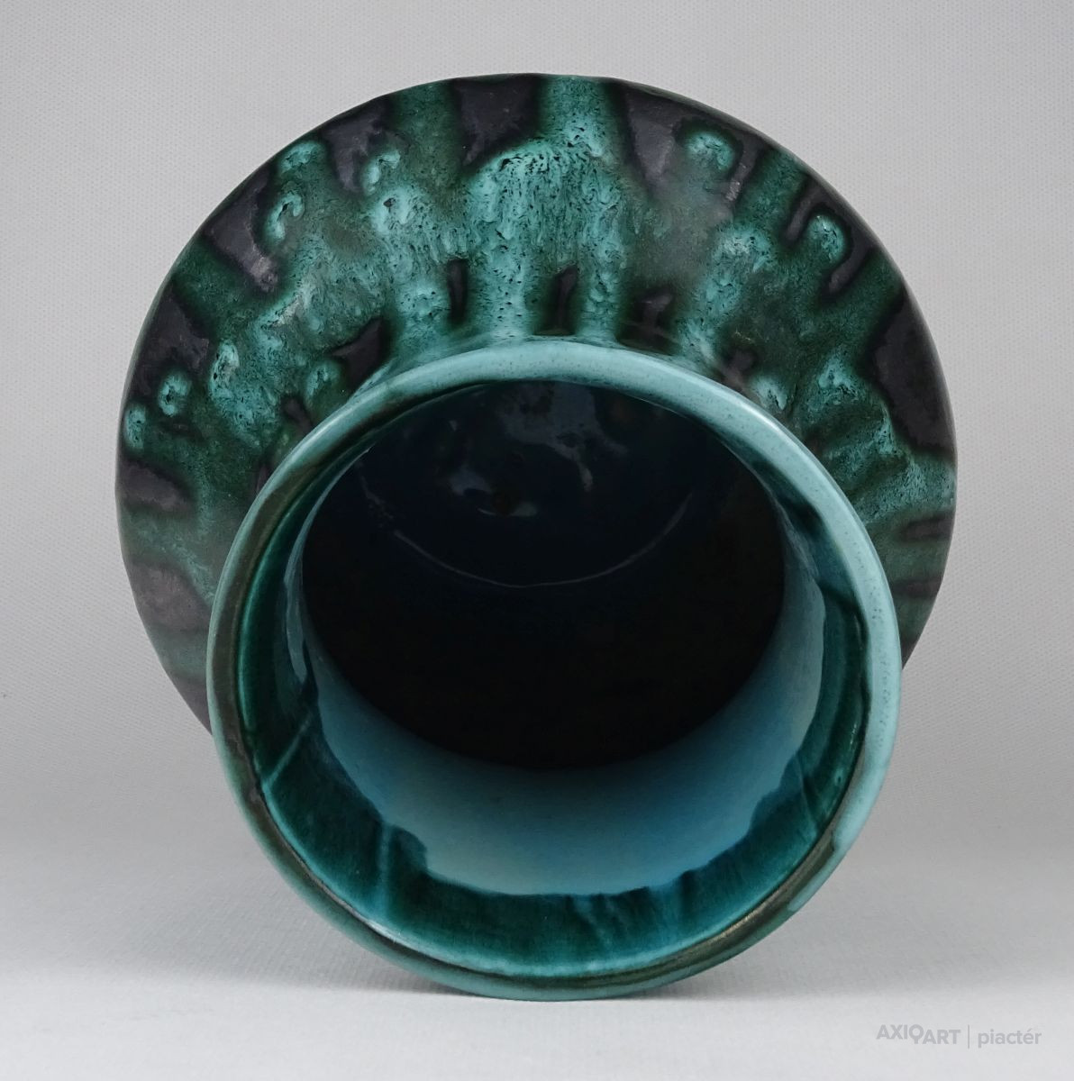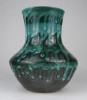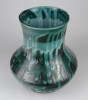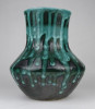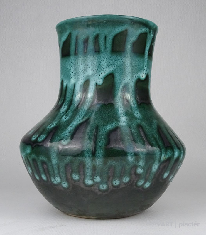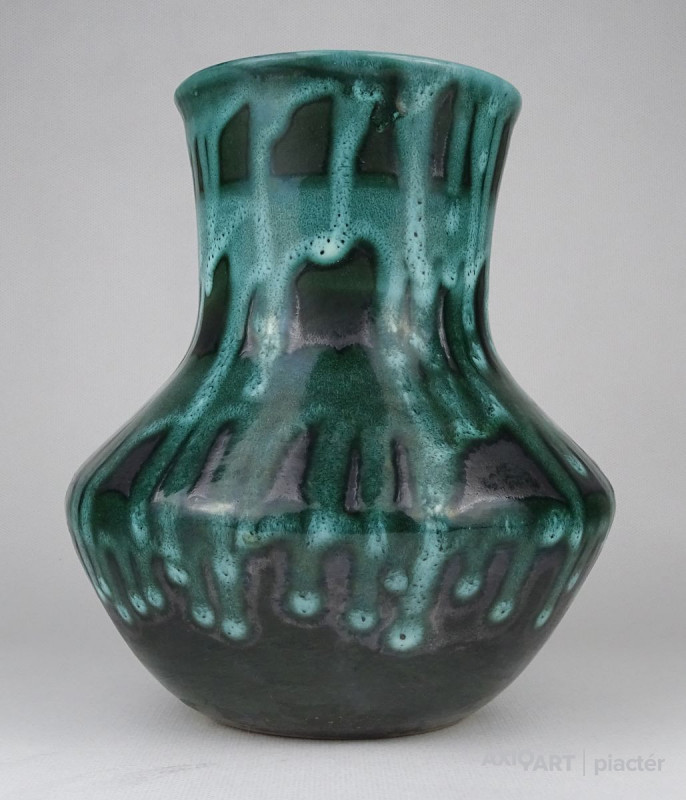 Hibátlan állapotú, zöld színű, csorgatott mázas iparművészeti kerámia váza, virágváza.