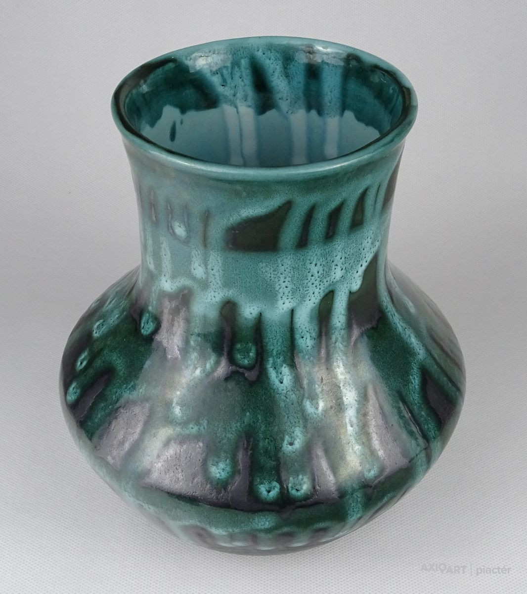 Hibátlan csorgatott mázas iparművészeti kerámia váza 20 cm