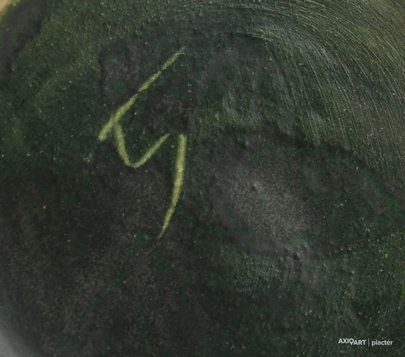 [1Y029/Z018] Olaj farost festmény, üveglap mögött, hibátlan képcsarnokos keretben. Hátoldalán Képcsarnok Vállalat papír címkéje: A művész neve: SCHÉNER MIHÁLY A kép címe: TÁJ Magasság: 66.5 cm Szélesség: 86 cm Súly: 6.54 kg Schéner Mihály festő, grafikus, szobrász, keramikus, bábtervező Medgyesegyháza, 1923-01-9 Elhalálozott: Budapest, 2009. május 11. Honlap: http://www.kormendigaleria.hu/kiadvany.html 1942-1947: Magyar Képzőművészeti Főiskola, tanára: Rudnay Gyula. 1978: Munkácsy-díj; 1984: érdemes művész; 1989: kiváló művész; 1995: Kossuth-díj. 1992-től a Magyar Művészeti Akadémia, 1993-tól a Széchenyi Irodalmi és Művészeti Akadémia tagja. 1956-ig tanított. 1982: Nagyatádi Faszobrász Alkotótelep, 1985: Nemzetközi Acélszobrász Alkotótelep, Dunaújváros. A stílusában felismerhető, mégis sokféle műtárgyat létrehozó ~ gazdag, állandóan alakuló életműve a folyton változó világban helyét kereső, az alkotói szabadságot megvalósító XX. századi képzőművész példázata lehetne. Magát expresszív-szürrealista alkotónak nevezi. Egyaránt dolgozik festékkel, textillel, fával, fémmel. Rajzol, szerkeszt, farag, épít, gyúr, varr és ragaszt, felhasználja a mézesbábok öntőformáit. Festő, rajzoló, textilszobor- és bábkészítő, fazekas, asztalos, esztergályos. Háromlépcsős folyamatban gondolkozik: rajzban tervez, majd fest, szobrot készít, “formába önt”, mindig a végső plasztikai megoldást keresi. Ami állandó és mégis játékosan változékony megjelenésű Schéner művészetében, az a gyermekkori emlékek által meghatározott népi mesterségek iránti tiszteletet kifejező motívumkincs, a tárgyi folklór formakészlete, amely már-már kézjegyként ismétlődik munkáin. Mitologikussá nőtt képzelete új lényeket teremt, pl: a Pigulát, amely disznótestű, emberfejű teremtmény. Schéner festményein a szürrealista motívumokat konstruktív szerkezetbe rendezi, a geometriát és az organikus természeti motívumokat egyaránt beépíti műveibe. A népi, népművészeti formakincsből merített lovas huszárok, betyárok, szegénylegények cifra szűr mentéje, piros csákója, fekete csizmája, az önálló életet élő zsinórdíszek és mézeskalács bábok, a kiskocsik a gyermekkori vásárok, búcsúk színes forgatagába vezet. A primér motívumokat aztán felváltják a vastagon felhordott felületbe karcolt jelek, vonalhálózatok, amelyek a játszó gyermek homokba rajzolt ábráit, a pásztorember fába vésett üzeneteit, az ősember barlang falába rótt mágikus jeleneteit idézik meg. A művész pillanatnyi érdeklődésének megfelelően a színek búvópatakként tűnnek el és jelennek meg ismét. A 60-as években leginkább a formákkal való játék érdekelte, a festmények felülete egyre gazdagodott: a táblaképek felületén applikációk jelentek meg, vagy lemállasztott rétegek hagyták maguk után hiányukat, motívumok nélküli ősformák, archetipikus képzetek bukkantak fel művészetében. A véletlenszerűnek látszó rétegekkel való játék azonban tudatos komponálás eredménye, amely később nyilvánvaló ritmusnak és formai szerkesztettségnek adja át a helyét, mint a Törvénytáblák c. sorozaton. A különböző művészi kifejezési formák egymásra termékenyítő hatással vannak, át- meg áthatják egymást. Textilszobrai, amelyekkel új műfajt teremtett, ugyanazzal az automatikus, expresszív-szürrealista módszerrel készülnek, mint festményei. A hagyományosan a népművészetben alkalmazott anyag, a filc lehetőséget ad a népi formakincs felelevenítésére, amely azonban a művész különös szürrealista átiratában jelenik meg. A szívekkel kivarrt, zsinórdíszes Posztókotlós c. művén mézesbábok lógnak, hátán huszárok lovagolnak. Egész sor textilből készült kéz-plasztikát alkot, amelyeket az ujjakra rávarrt díszekkel öltöztet, személyesít meg. A színes-különös világból aztán ~ újra puritán képi és formai rendbe juttatja el a nézőt, majd nemsokára tépett, gyűrt, vágott, csorgatott, repedezni hagyott szenvedélyesen vonagló képi felületeket hagy hátra. Schéner készített apró gyermekjátékokat, térstruktúra-tereket, mászókákat is. A magyar népi formák mellett szürreális játékaiban gyakran alkalmaz görög mitológiai alakokat, “elkentaurosodott” lovakat, Gorgó-fejeket, sellőket, hárpiákat, Pán-ábrázolásokat. Schéner nemcsak saját művészetéről publikál, hanem művésztársairól is számos írása jelenik meg, elsősorban az Új Auróra c. folyóiratban, amelynek egy ideig főmunkatársa volt. Irodalom kiállítása, Magyar Építőművészet, 1962/4. Húsz év után, Művészet, 1965/4. BOZÓKY M.: ~, Tiszatáj, 1968/5. PERNECZKY G.: Nincs uborkaszezon, Élet és Irodalom, 1969. augusztus 8. BARÁNSZKY-JÓB L.: ~, Művészet, 1969/9. LÁSZLÓ GY.: ~ kaposvári kiállítása, Jelenkor, 1969/4. MAJOR M.: Pásztorok, betyárok, huszárok - kezek, Tükör, 1970. szeptember 15. FRANK J.: Bemutatjuk ~t, Élet és Irodalom, 1972. május 6. ról kiállítása ürügyén, Képzőművészeti Almanach, Budapest, 1972 Sötétkék kokasok, Élet és Irodalom, 1973. szeptember 9. MAJOR M.: ~ játékai, Élet és Irodalom, 1974. július 27. BARTA J.: Egy különös művész, Alföld, 1974/6. VADAS J.: Szárnykészítők, Élet és Irodalom, 1975. október 4. JUHÁSZ F.: A halál ellen játszani, Élet és Irodalom, 1975. május 17. PAP G.: Kincsek és műkincsek, Művészet, 1975/6. P. SZŰCS J.: Az utak kettéválnak, Művészet, 1978/3. Békési művészet, Művészet, 1978/7. SZAMOSI F.: ~ [kismonográfia], Budapest, 1978 VADAS J.: Játék a játékkal, Élet és Irodalom, 1979. augusztus 18. NÉMETH L.: ~ műveiről, Művészet, 1979/4. MIKLÓS P.: Mit akar ez a múzeum?, Művésze