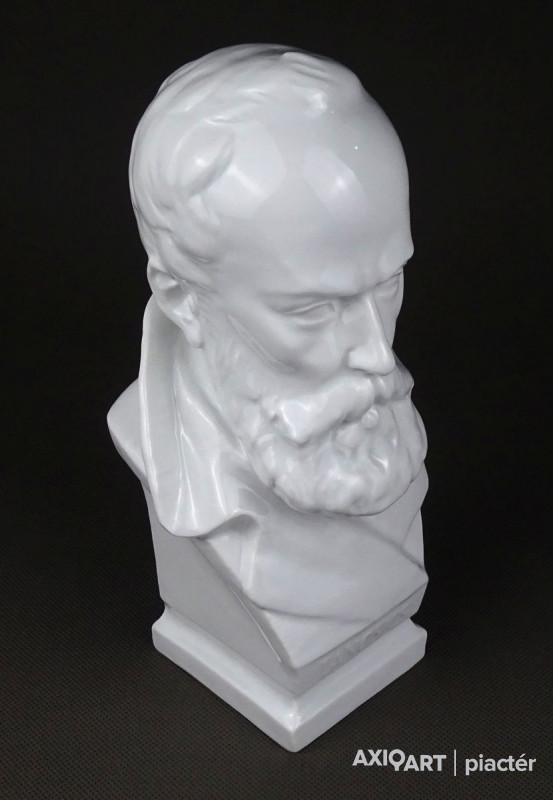 Régi, hibátlan állapotú, jelzett, fehér színű Herendi porcelán Táncsics Mihály büszt, mellszobor.