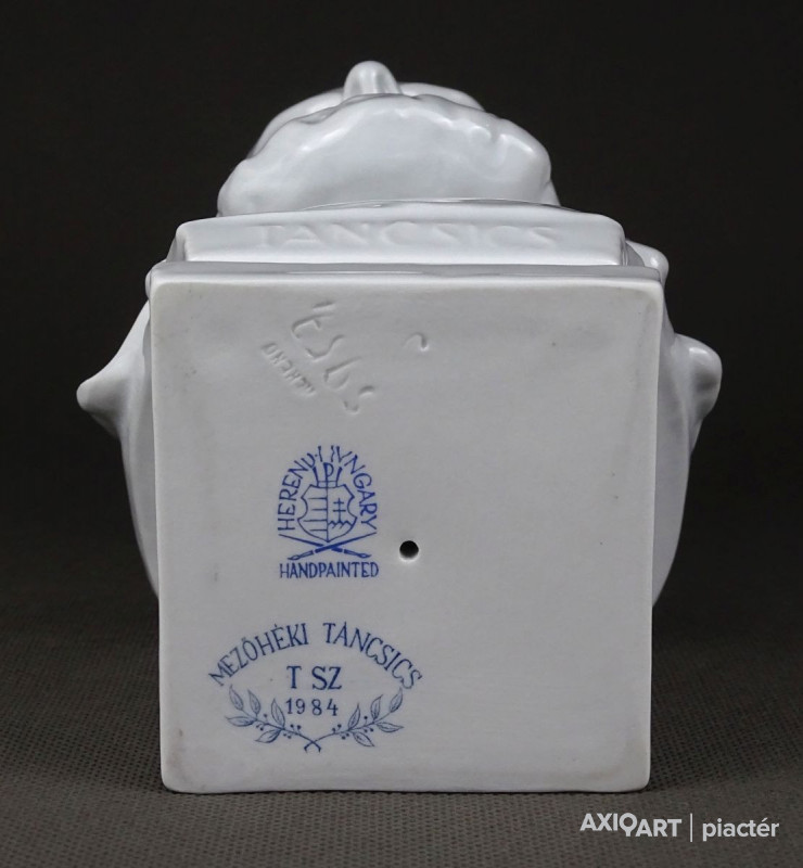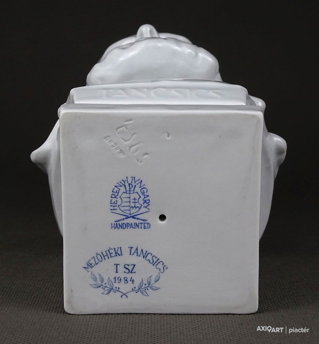 [1R505/UZ-K] Régi, hibátlan állapotú, jelzett, fehér színű Herendi porcelán Táncsics Mihály büszt, mellszobor. A talapzaton felirat: TÁNCSICS Alján kék Herendi márkajelzés: HEREND HUNGARY HANDPAINTED Mélynyomással: HEREND Formaszám: 5957 Babérágak felett dátum és felirat: MEZŐHÉKI TÁNCSICS 1984 Magasság: 21.5 cm Szélesség: 10.5 cm Súly: 0.595 kg