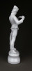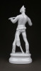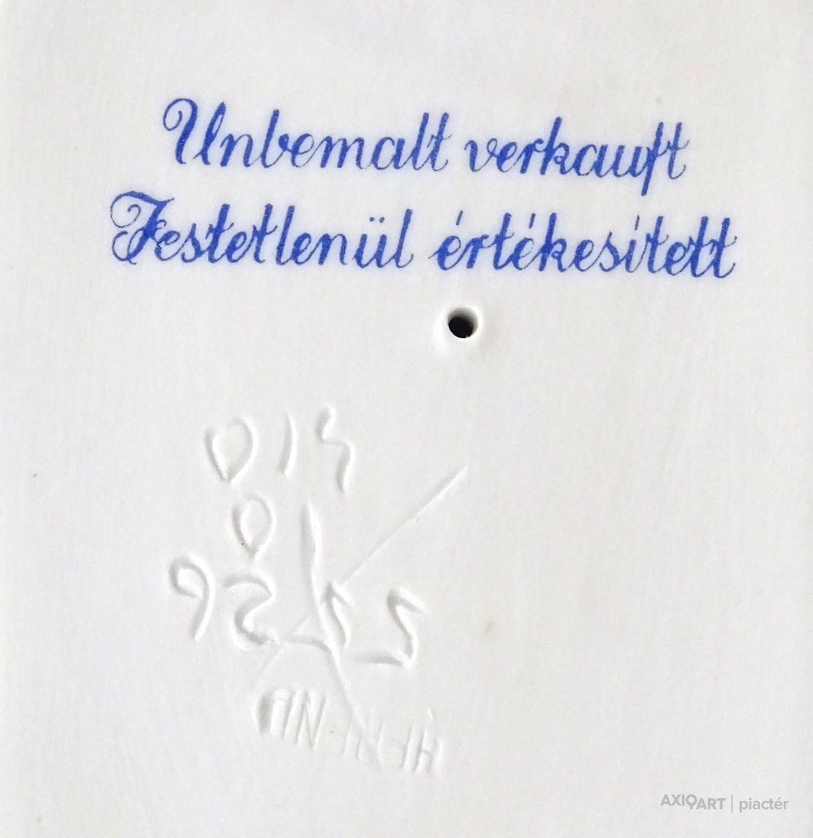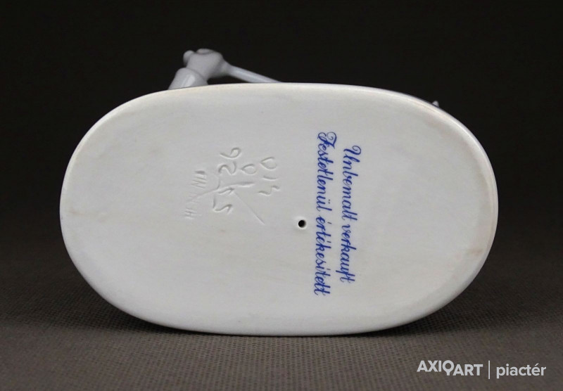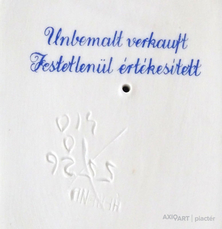 [1D642/BX-8] Hibátlan állapotú, talapzaton álló, jelzett hófehér Herendi porcelán Hadik huszár. Alján mélynyomású jelzés: HEREND Formaszám: 5526 Felirat kékkel: UNBEMALT VERKAUFT FESTETLENÜL ÉRTÉKESÍTETT A huszár formatervezője Kisfaludy Stróbl Zsigmond. Magasság: 23 cm Szélesség: 10 cm Súly: 0.295 kg