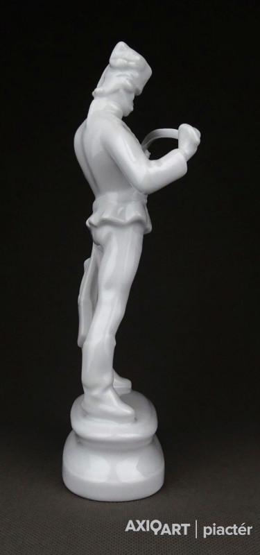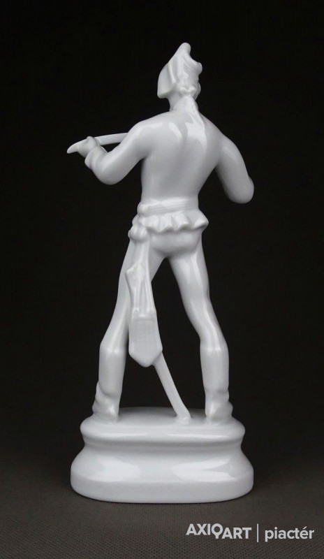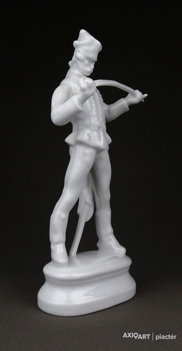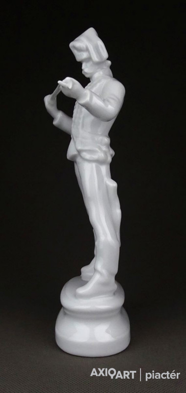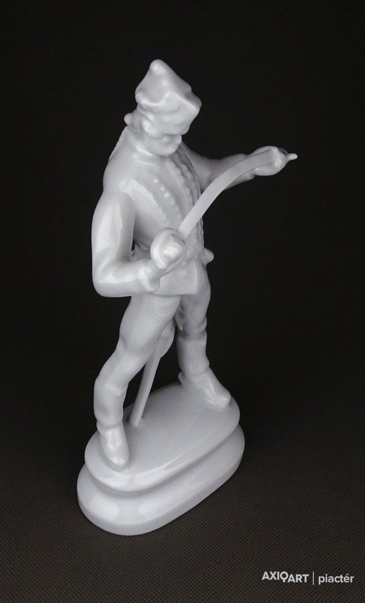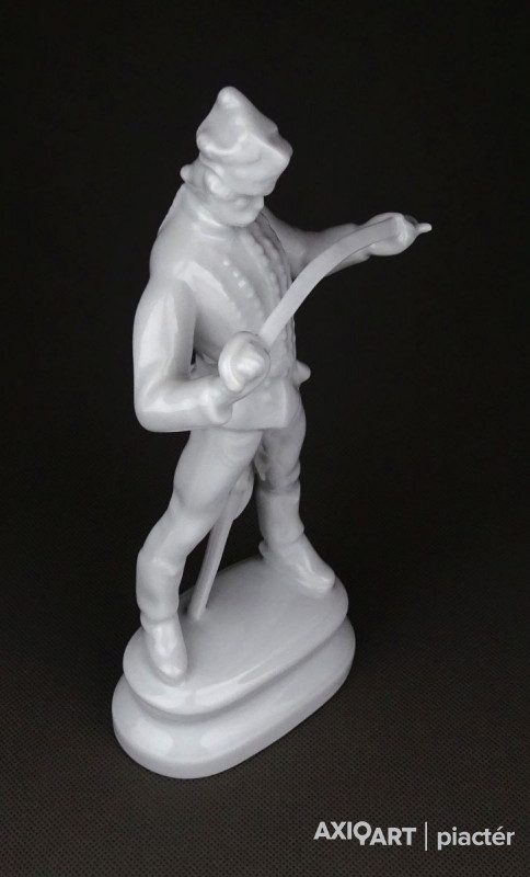 Hibátlan állapotú, talapzaton álló, jelzett hófehér Herendi porcelán Hadik huszár.