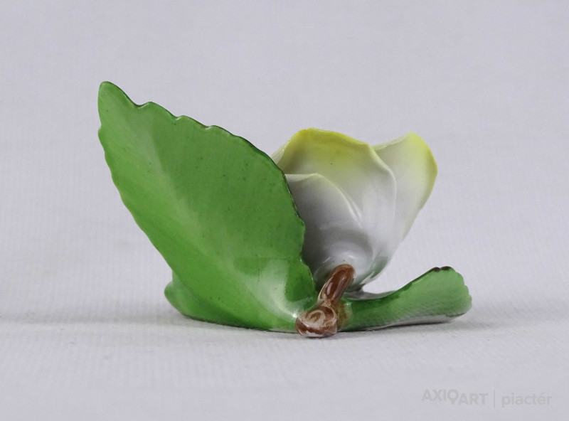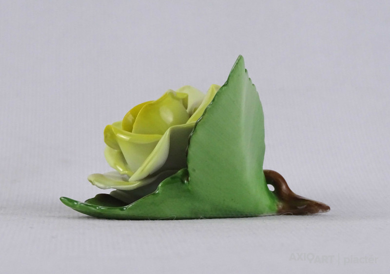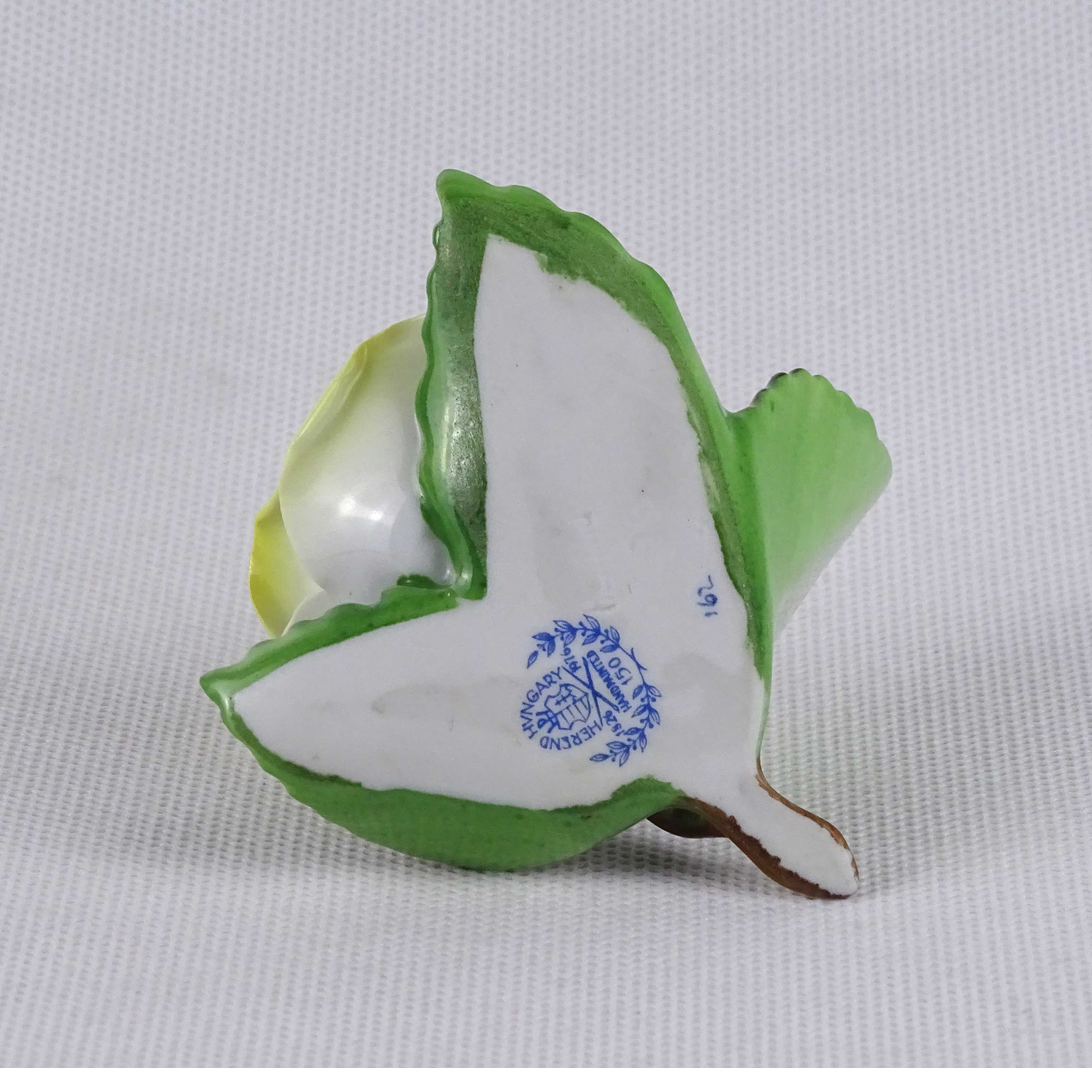 [1U638/Z040] Régi, hibátlan állapotú, Herendi porcelán rózsa, sárga rózsa. Alján kék jubileumi Herendi márkajelzés: HEREND HUNGARY 1826-1976 HANDPAINTED 150 Mélynyomással: HEREND Formaszám: 9106 Magasság: 4.5 cm Szélesség: 7 cm Hosszúság: 7.5 cm Súly: 0.06 kg