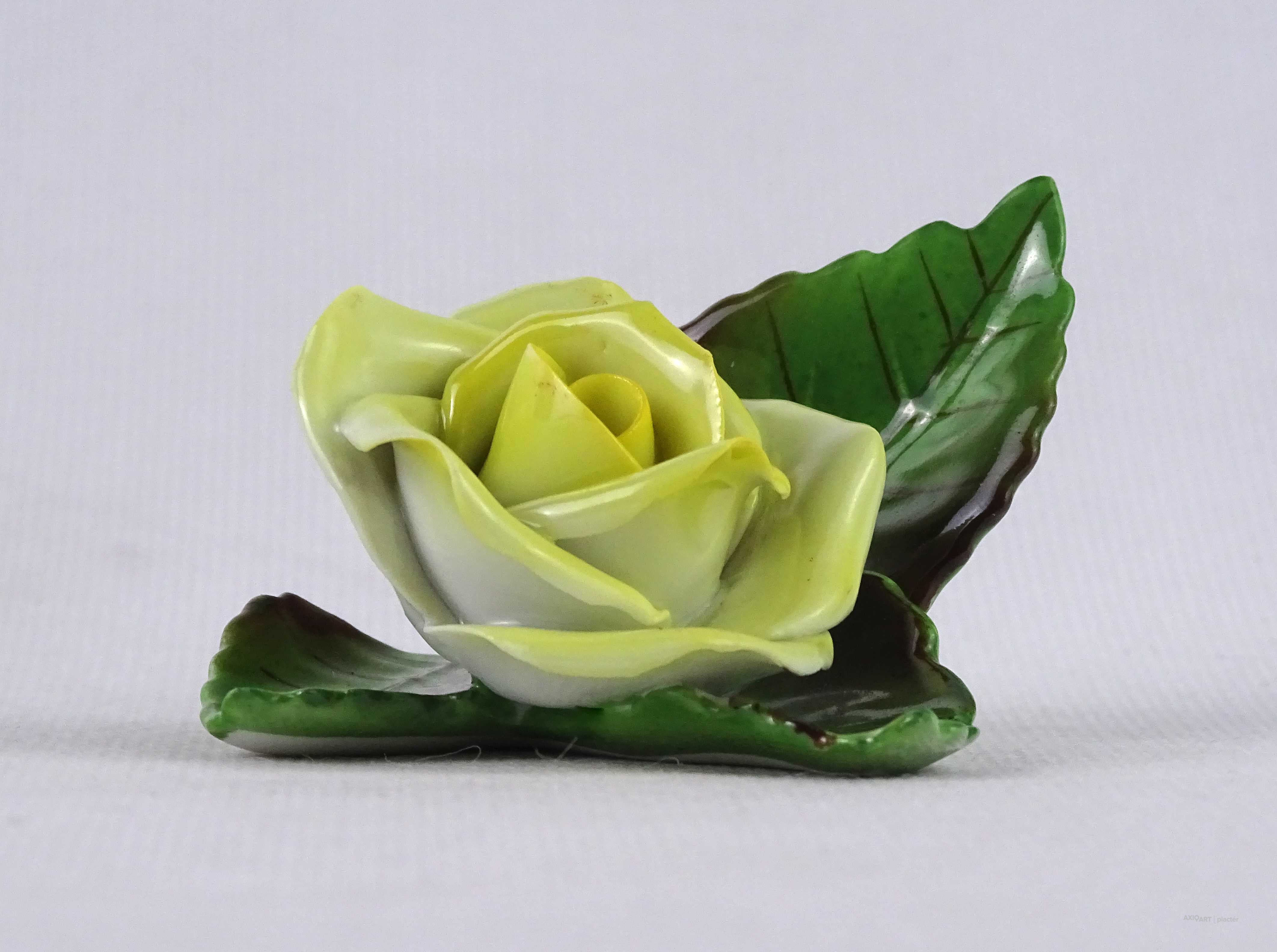 Régi, hibátlan állapotú, Herendi porcelán rózsa, sárga rózsa.