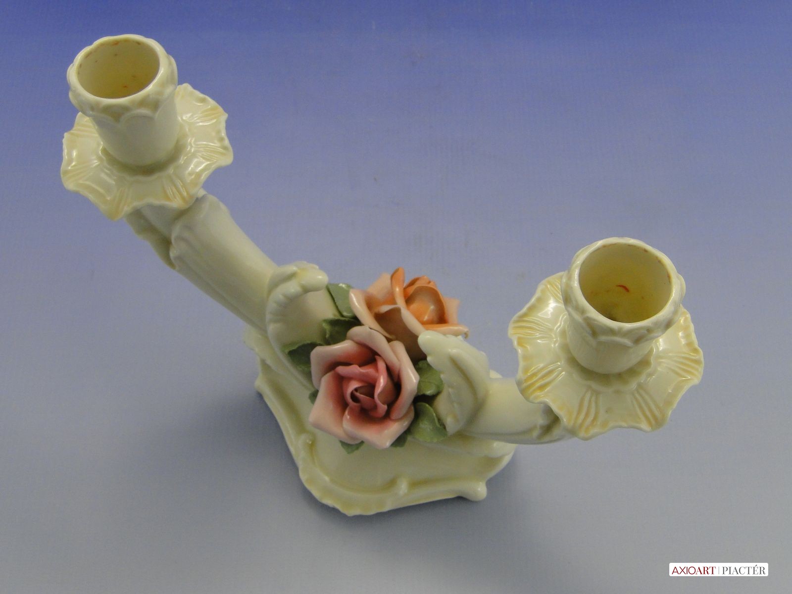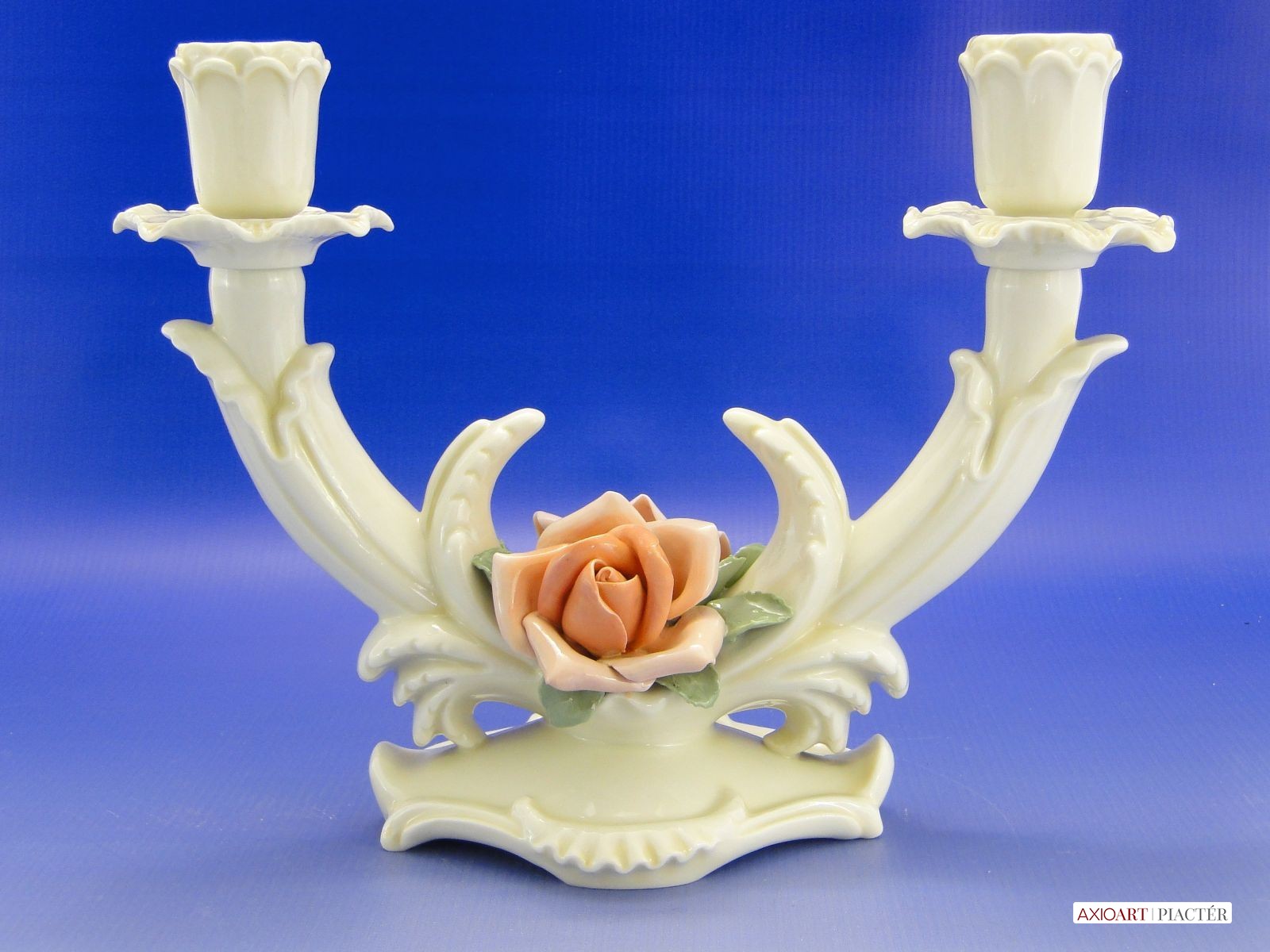Dupla rózsás, dupla karú asztali gyertyatartó.
