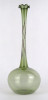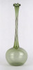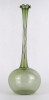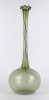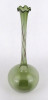 [1R386/X225/2] Gyönyörű, hibátlan állapotú, fodros szélű, zöld színű, hajszálvékony üveg váza, szálváza, egy szál virág számára. Magasság: 29 cm Szélesség: 10.7 cm Súly: 0.055 kg