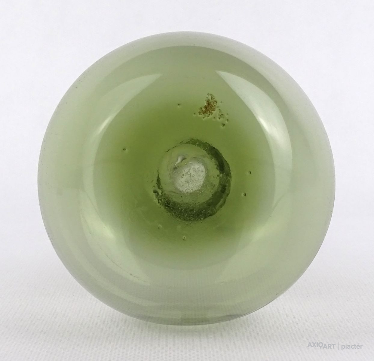 [1O212/Z046] Hibátlan állapotú, színezett fúvott üveg váza, talpas üveg váza vagy üveg kupa. Skandináv design üveg. Talpán a fúvás szakítás nyoma szépen kivehető. Magasság: 14 cm Szélesség: 6.5 cm Súly: 0.215 kg Erik Höglund  Ugrás a navigációhozUgrás a kereséshez A papról (1902–1971) lásd Erik Höglund (pap) . Erik Höglund Született 1932. január 31. Karlskrona , Blekinge megye Halál 1998. január 27. (65 éves) Maria Magdalena plébánia , Stockholm Állampolgárság svéd Foglalkozás/megbízás Tervező, művész Ismert Tervezés Koszta Boda számára Feleség Maerit Levin (sz. 1953–1967; elvált) Ingrid Höglund (sz. 1974–1998; halála) Partner Monica Backström (partner 1968-1972) Rokonok Anna Höglund (lánya) Erika Höglund (lánya) Albin Höglund (fia)  Erik Sylvester Höglund , 1932. január 31-én született Karlskronában , 1998. január 27-én halt meg a stockholmi Maria Magdalena plébánián , svéd szobrász , festő , grafikus és üvegművész . Életrajz  Erik Höglund Torsten Höglund és Jenny Jonsson könyvelő fia, valamint Tore Enar Höglund szobrász és grafikus öccse volt . Tanulmányait a stockholmi Konstfackban végezte , először dekorfestészetet Fritz Sjöströmnek , majd szobrászatot Robert Nilssonnak , végül 1951–1952-ben Harald Sallbergnek grafikát . Erik Rosén , a Boda Üveggyár 1953 és 1973 között dolgozó tervezője fogadta be , és ez idő alatt jött el, hogy átalakítsa a svéd műüveggyártást az üvegtermékek kinézetére vonatkozó új ötletek bevezetésével. Ösztöndíja többek között metszetekkel kapcsolatban, a színek és a földes, aszimmetrikus dizájn sikeres lett a külpiacon. Bodán töltött ideje alatt fenyővel, vasalással és bútorokkal is foglalkozott. Később más üveggyárakkal is együttműködött, például a Pukeberggel , a Lindshammarral és a Studioglas Strömbergshyttannal . 1968-ban Monica Backström üvegművésszel megalapította a Backström & Höglund Design AB formatervező céget, amely bútorok, háztartási eszközök és használati tárgyak tervezésével foglalkozik. Höglund tagja volt a Vet Hut AB-nek is, amelyet 1971-ben alapított a Boda glasbruk tíz tervezője szokásos munkájuk mellett: Erik Höglund, Monica Backström, Ann Wolff , Göran Wärff , Bertil Vallien , Ulrica Hydman-Vallien , Per Arne. Lundahl, Liselotte Jörgensdotter, Gunhild Sinnemark és Rolf Sinnemark . Erik Höglund szobrászként számos köztéri dekorációt készített különféle anyagokból, köztük téglából és betonból. Ezt követően gyakran dolgozott együtt olyan építészekkel, mint Jon Höjer a Höjer & Ljungqvistnél , Bengt Gate és Lars Ågren .  Kiállítás  A stockholmi Palmcrantzska gyárban korábban Ulf G. Lindén állandó kiállítása volt Erik Höglund alkotásaival. Ezt a gyűjteményt 2009 szeptemberében a karlskronai Blekinge Múzeumnak adományozták.  Közművek válogatásban  Két állat és egy játék (1966), gránit, Bredängs Torg Stockholmban. Fiskargumman a karlskronai halpiacon. Négyzet alakú oszlop Gävle-ben Erik Höglund mintegy 150 köztéri dekorációt készített üvegből, bronzból, kovácsolásból, téglából, gránitból és betonból. Kerékpárosok I (1956), bronz, a trelleborgi oktatási intézmény Kerékpárosok II (1957), bronz, a karlskogai oktatási intézmény Kerékpárosok III (1957), bronz, stockholmi Hökarängens iskola Az élő szó (1958), festmény a nybrói városi könyvtárban Kerékpárosok IV (1958), bronz, Handverkstorget Sandvikenben Kerékpárosok V (1959), Sjöboskolan, Borås Falfestmény üvegablak (1962) a borgholmi templomban Kristallglasskogen (1964), üvegmozaik fal, Ellagårdsskolan Täby községben A tudás fája (1966), vasműves és üveg, Folkets Hus Nybroban Állatszobrok (1964-67), gránit, Hallsberg Két állat és egy játék (1966), gránit, Bredängs torg Stockholmban Tó szökőkúttal (1967), gránit, Trelleborg Ülő terhes nő (1971), bronz, Haganässkolan Älmhultban Hajó halászokkal (1972), vas, üveg és fa, Hotel Witt Kalmarban Négyzet alakú oszlop (1971-74), beton, Stortorget Gävle -ben A súlyemelő (1974), bronz, az östersundi sportcsarnok Gyűrűk a vízen (1976-77), bronz, Rödeby Torg , Karlskrona önkormányzat Az élet játéka , tégladomborműves fal és régi érmék , üveg, mindkettő 1979–1980, Sparbanken Linköpingben Úszók (1980), kovácsoltvas, úszócsarnok Rödebyben , Karlskrona önkormányzat Cirkuszgömb (1980-81), kovácsoltvas, Kristianstad megyei tanács Fiskargumman (1981-82), bronz, halpiac Karlskronában Az olvasócsalád (1983), bronz és üveg, Kalmár Városi Könyvtár Életmentő (1985), réz, úszócsarnok Haganässkolanban Älmhultban Dans bort i vägen (1985), bronz, Torsås volt Anya és gyermeke , bronz, Trelleborg A büszke apa és Két ember , bronz, Eskadern lakónegyed Linköpingben Játssz szobrot téglából, Lönneberga óvoda, Norra Fäladen Lundban  Forrás: wikipédia