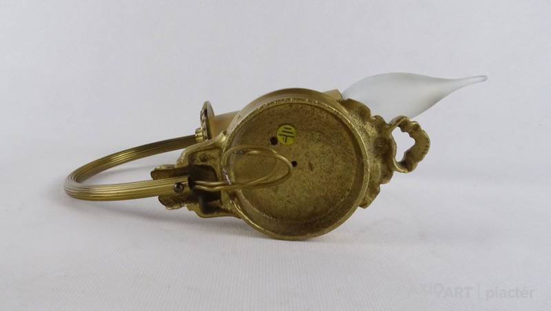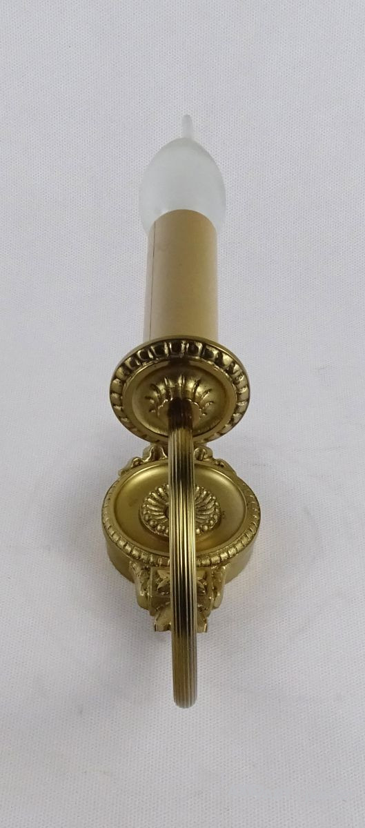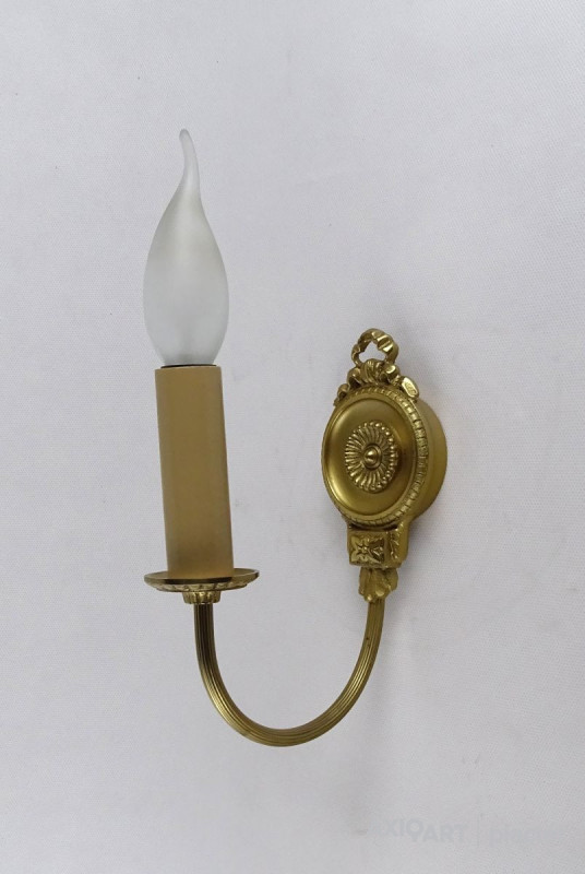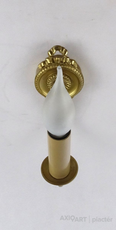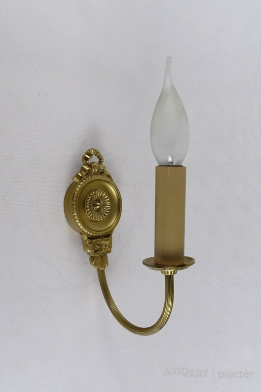 Hibátlan állapotú gyertyaégős réz falikar masnis díszítéssel. A kar gyertyában végződik, kisméretű (E14) izzó való bele. Működik.