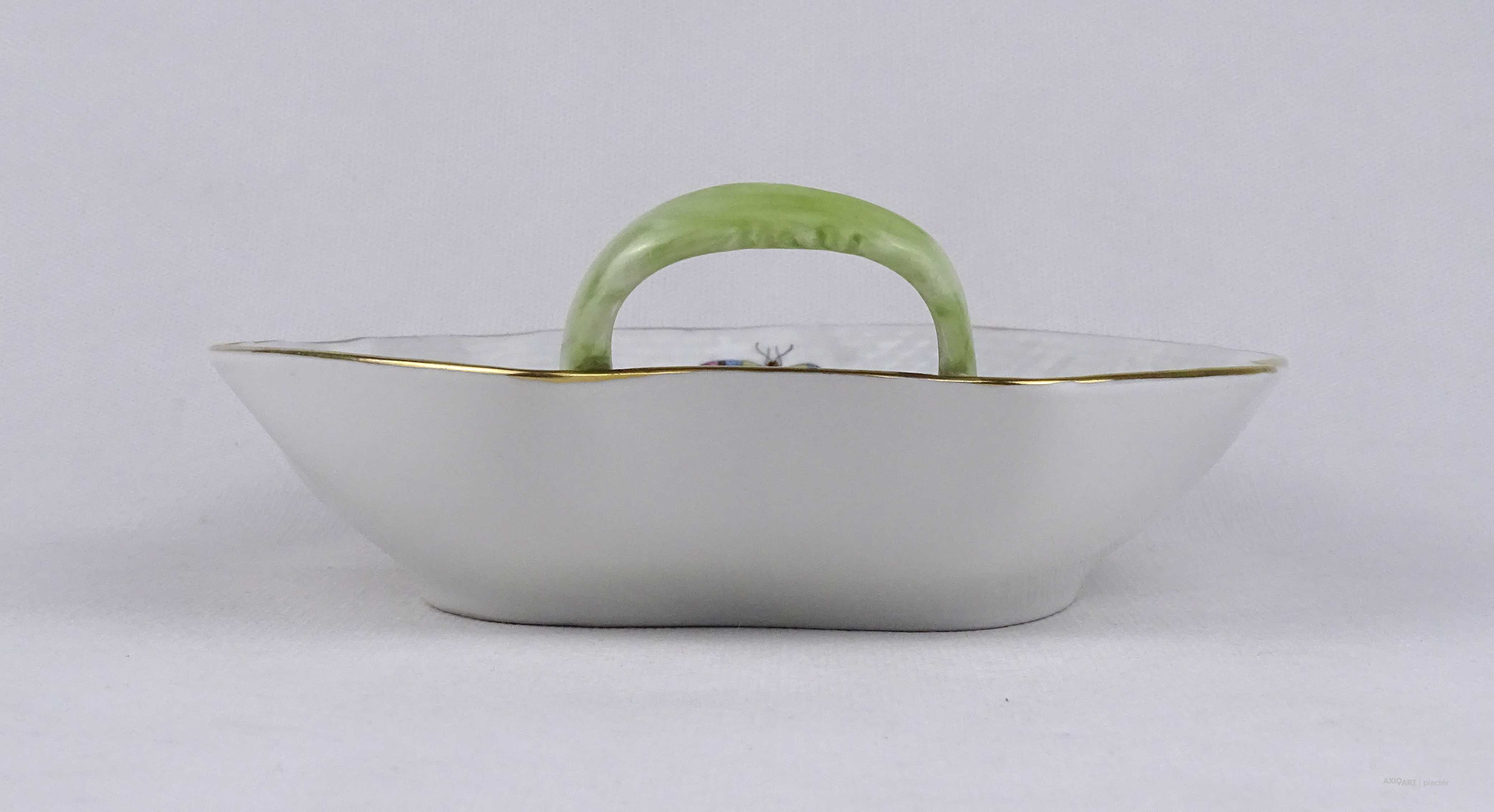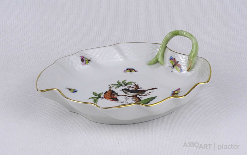 Hibátlan Rothschild mintás Herendi levél alakú porcelán asztalközép kínáló tál