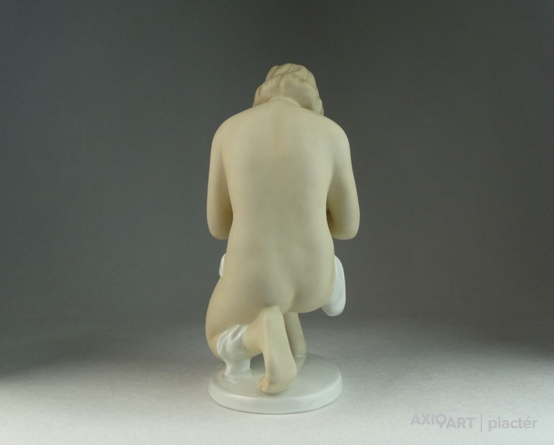 Régi, gyönyörű hibátlan állapotú, jelzett, talapzaton térdelő porcelán egész alakos akt.
