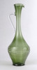 [1R387/X225/2] Hibátlan állapotú, zöld színű, hajszálvékony üveg kiöntő. Fújt üveg tárgy. Magasság: 21.5 cm Szélesség: 8.2 cm Súly: 0.08 kg