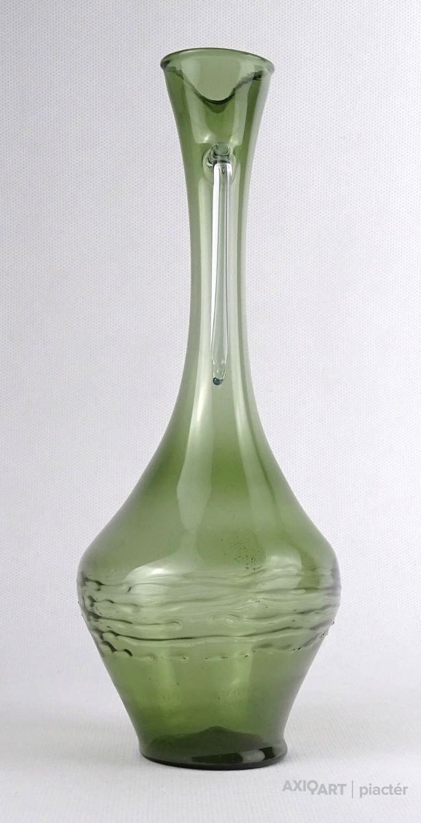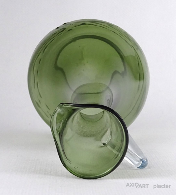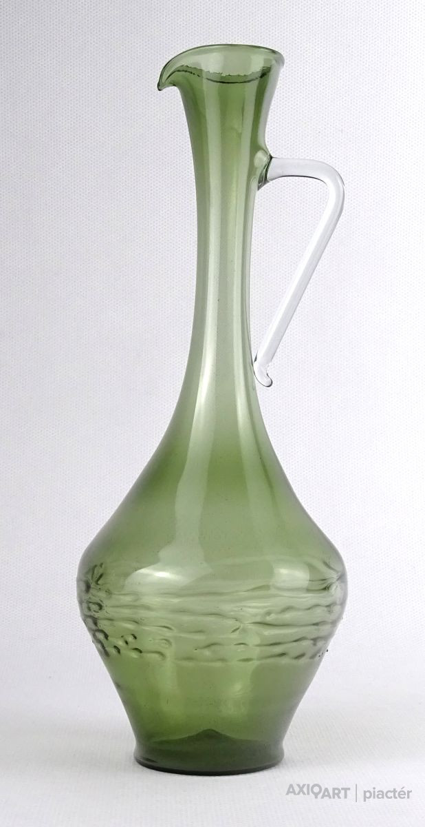 Hibátlan zöld színű fújt muranoi üveg kancsó 21.5 cm