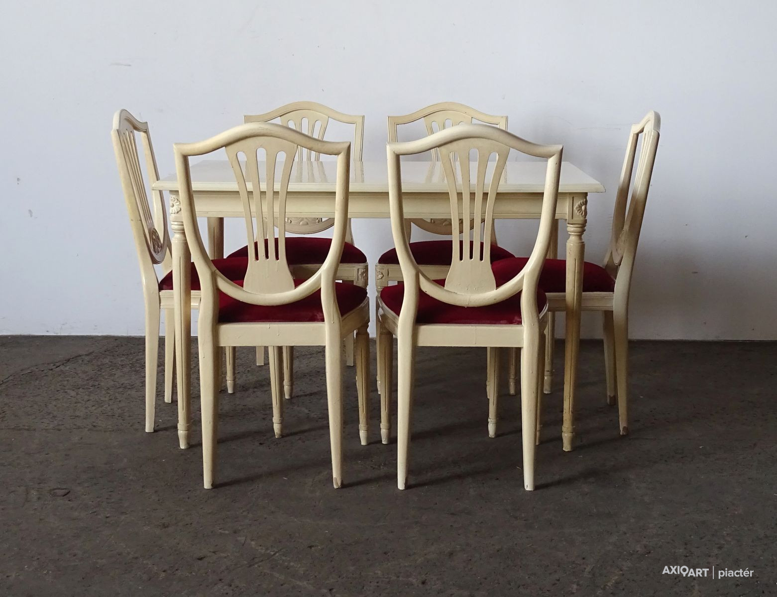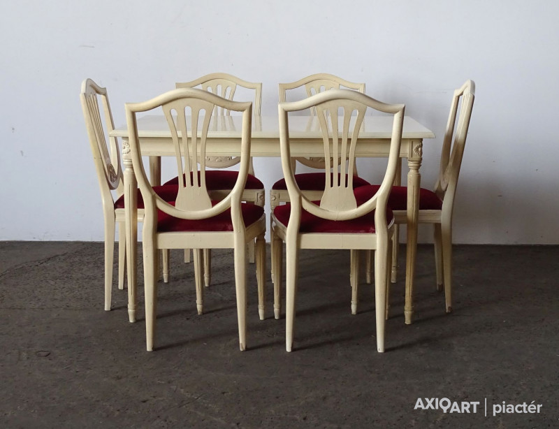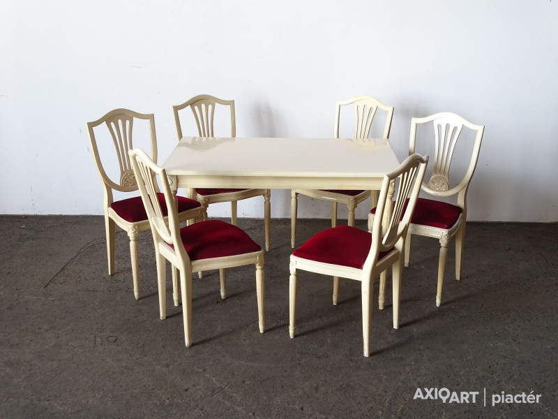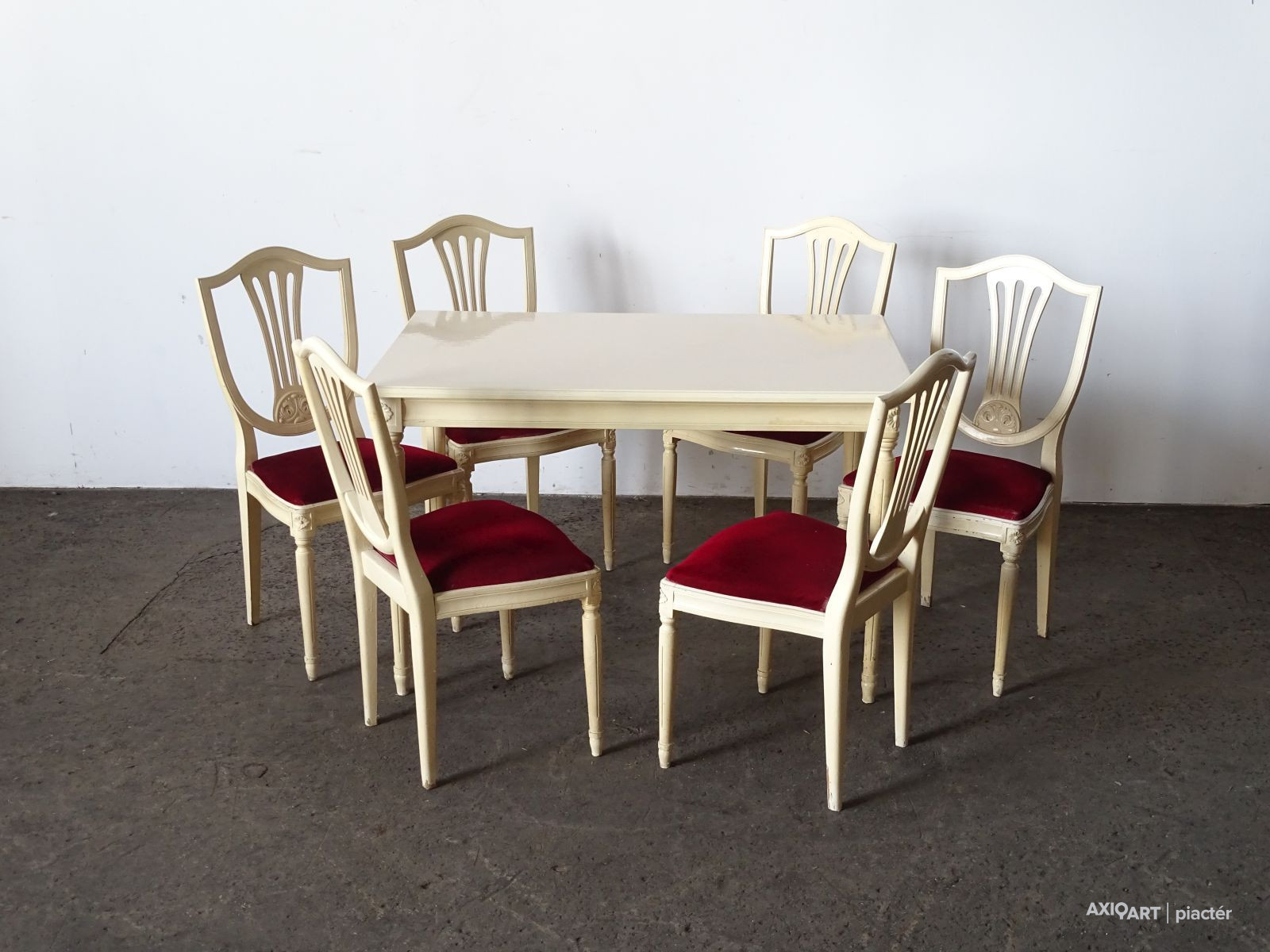 Historizáló fehér színű empire étkezőgarnitúra asztal + 6 darab szék