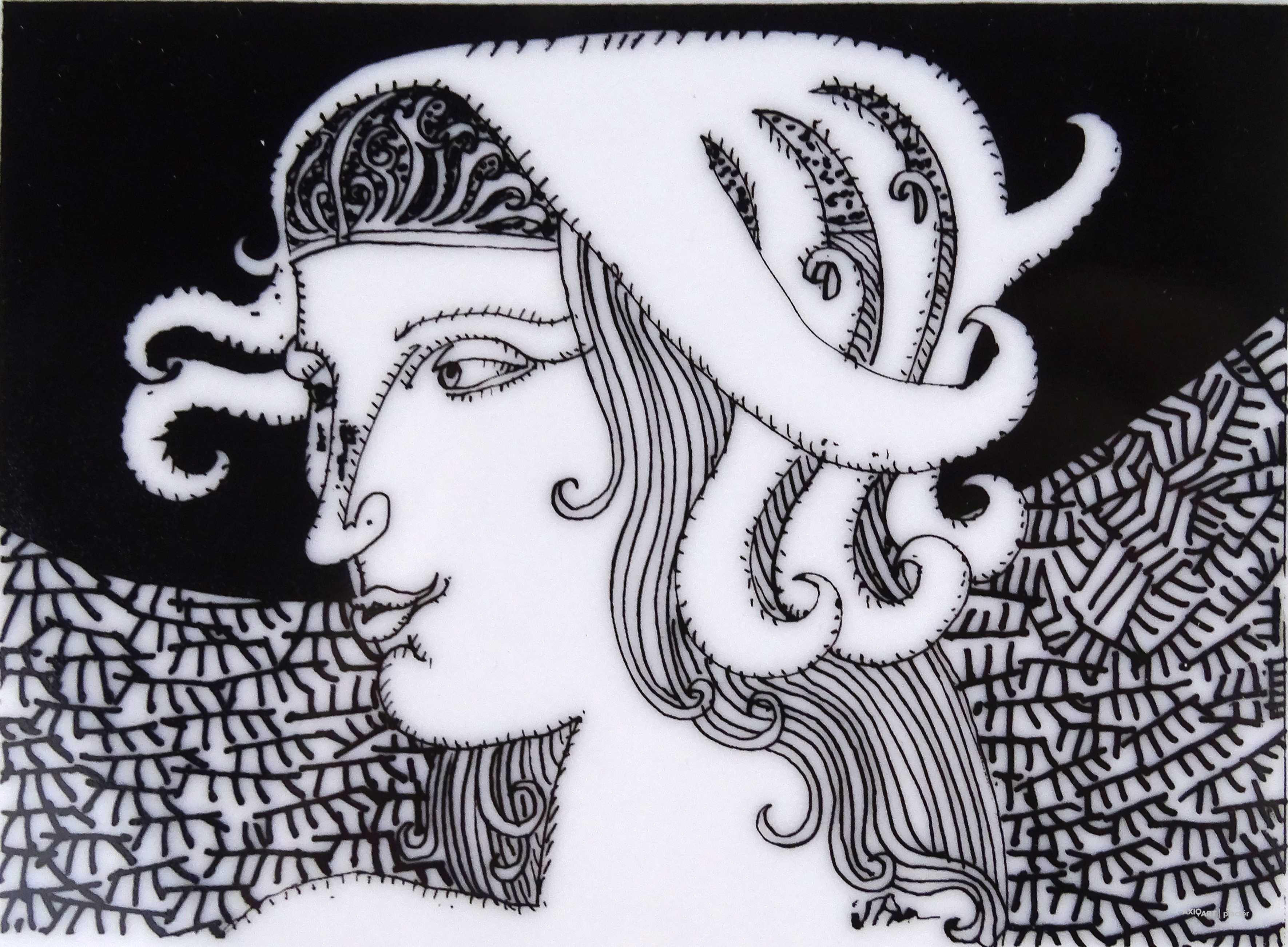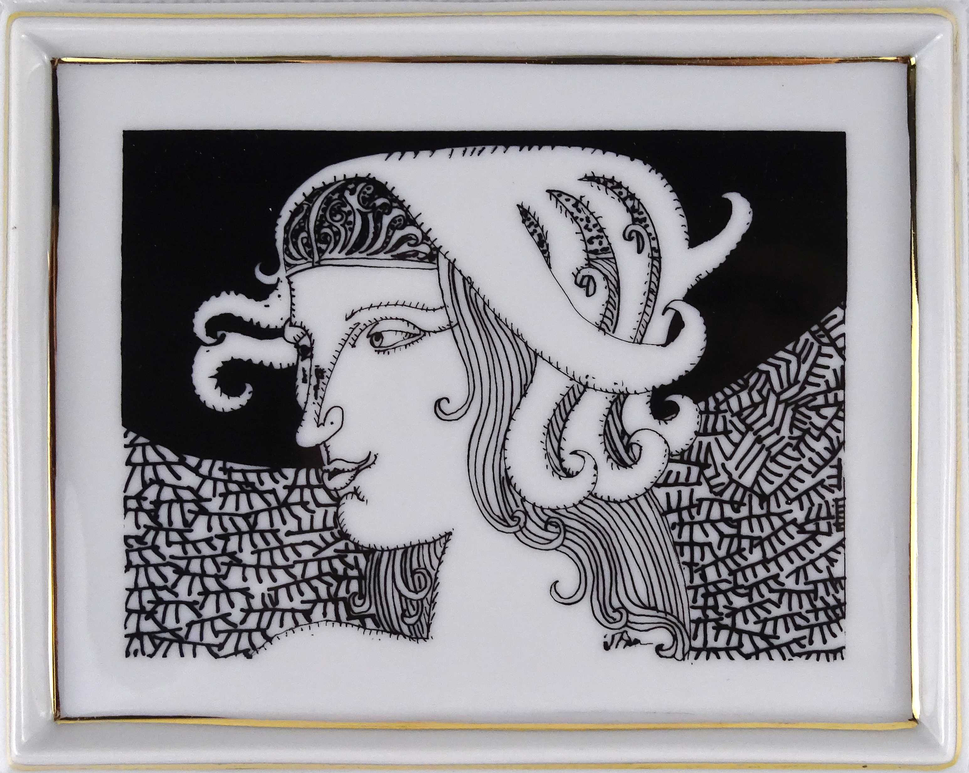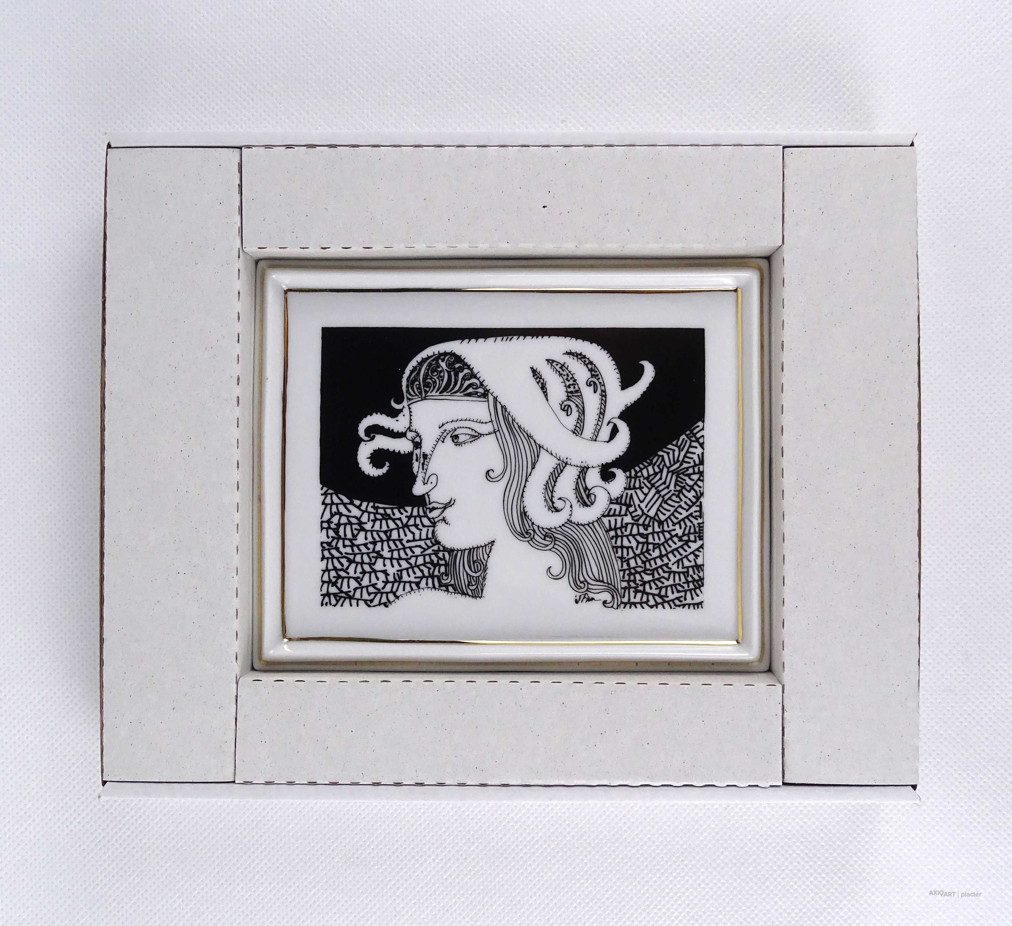 Hollóházi falikép Szász Endre STUDIÓ porcelán női portré eredeti dobozában 15 x 12 cm