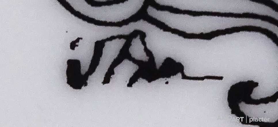 A képen Szász Endre szignója a minta között feketével és a hátoldalon a jelzésnél arany színnel megtalálható!