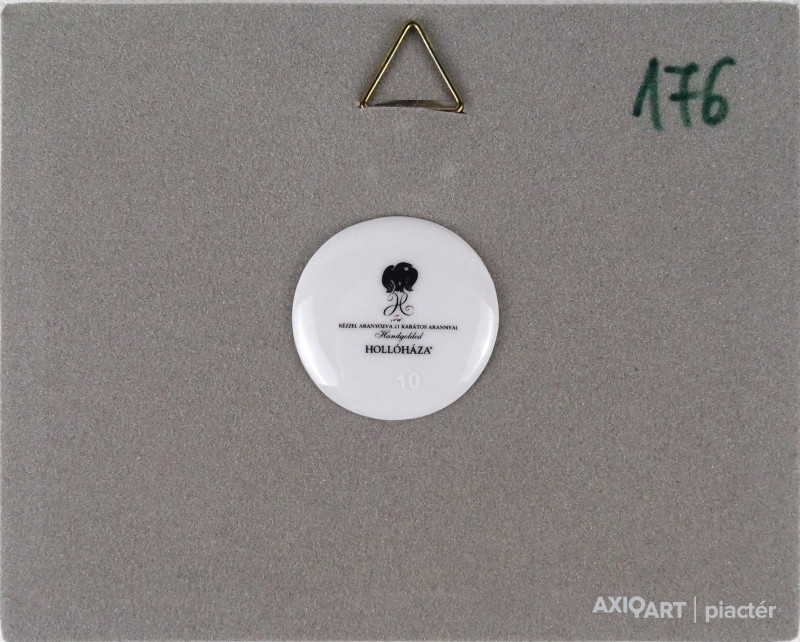 Hibátlan állapotú, valódi arannyal aranyozott, hollóházi porcelán plakett, fiatal nőt a háttérben sárkánnyal ábrázoló Szász Endre portré, falikép, eredeti dobozában. Falra akasztási lehetőséggel rendelkezik.