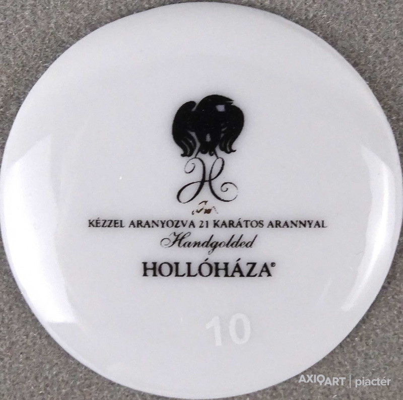 [1W578/Z260] Hibátlan állapotú, valódi arannyal aranyozott, hollóházi porcelán plakett, fiatal nőt a háttérben sárkánnyal ábrázoló Szász Endre portré, falikép, eredeti dobozában. Falra akasztási lehetőséggel rendelkezik. Hátoldalán jelzés: KÉZZEL ARANYOZVA 21 KARÁTOS ARANNYAL HANDGOLDED HOLLÓHÁZA A képen Szász Endre szignója a minta között feketével és a hátoldalon a jelzésnél arany színnel megtalálható! Magasság: 12 cm Szélesség: 15 cm Súly: 0.26 kg