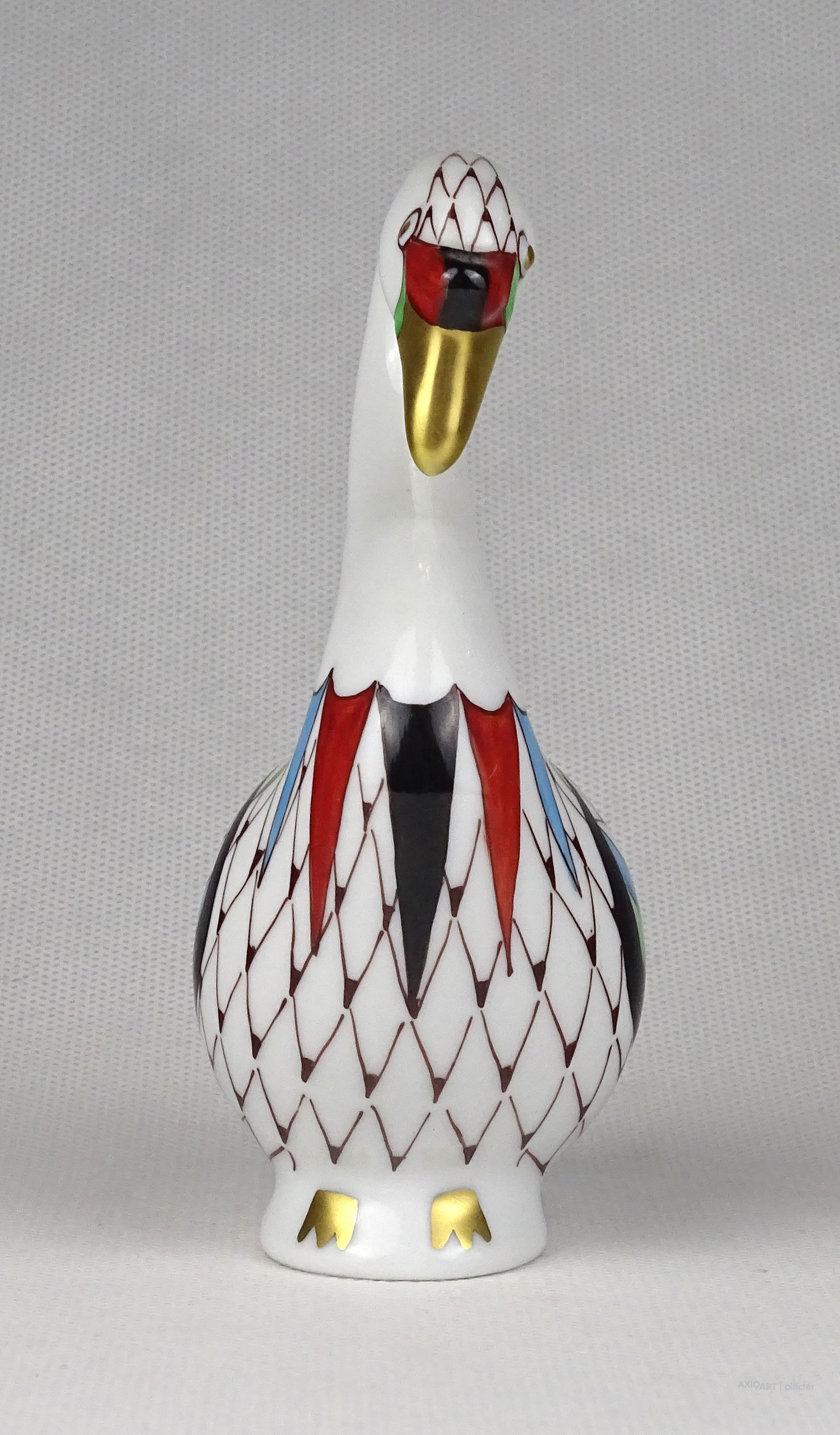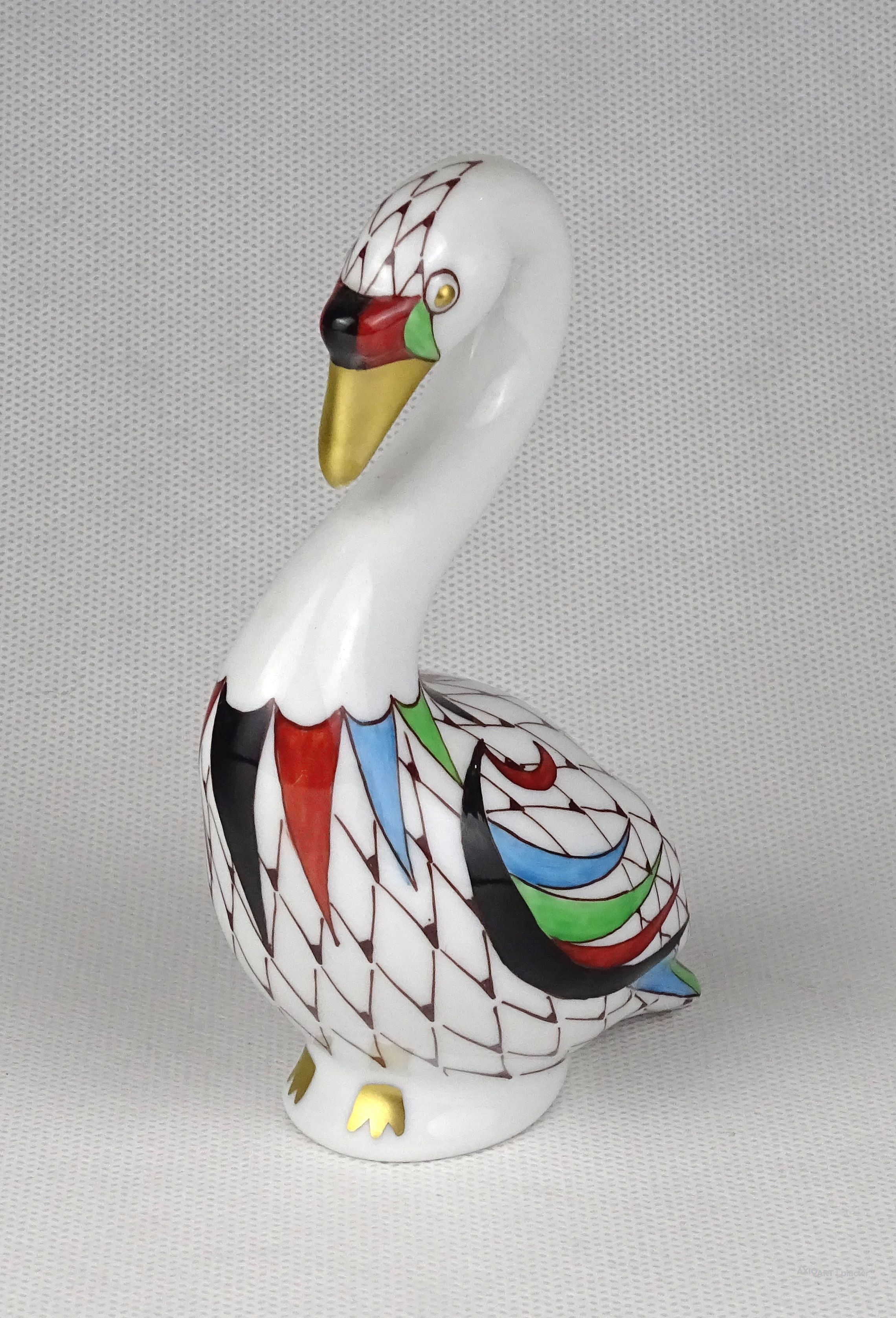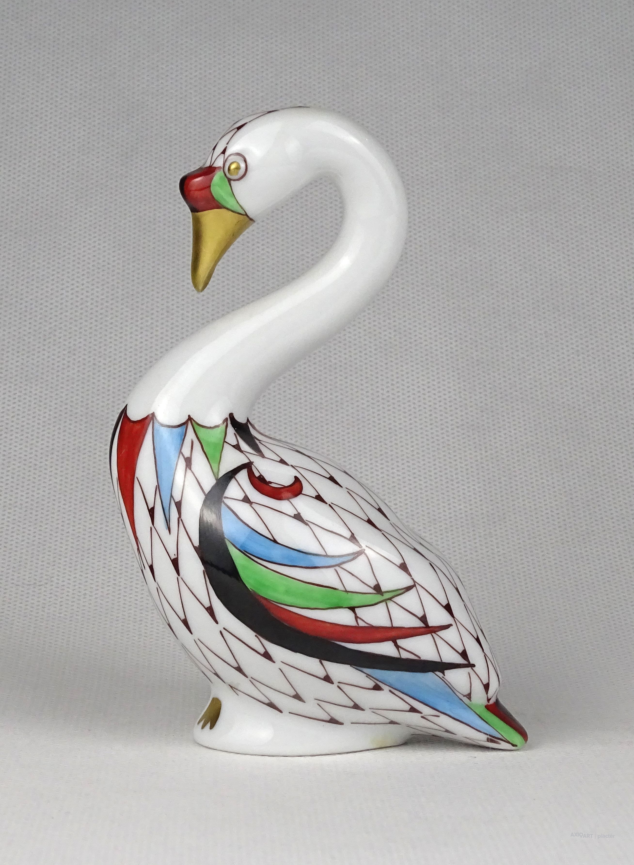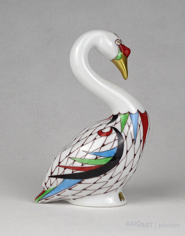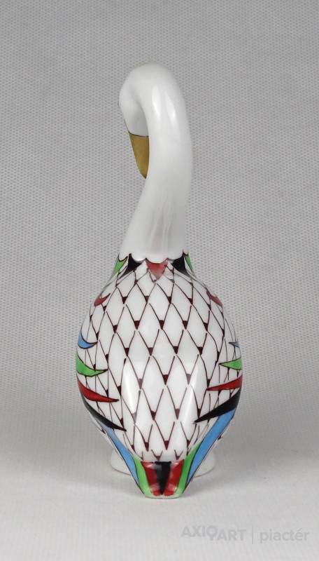 Hibátlan állapotú, jelzett, garden mintás Hollóházi porcelán hattyú madár, aranyozott csőrrel.