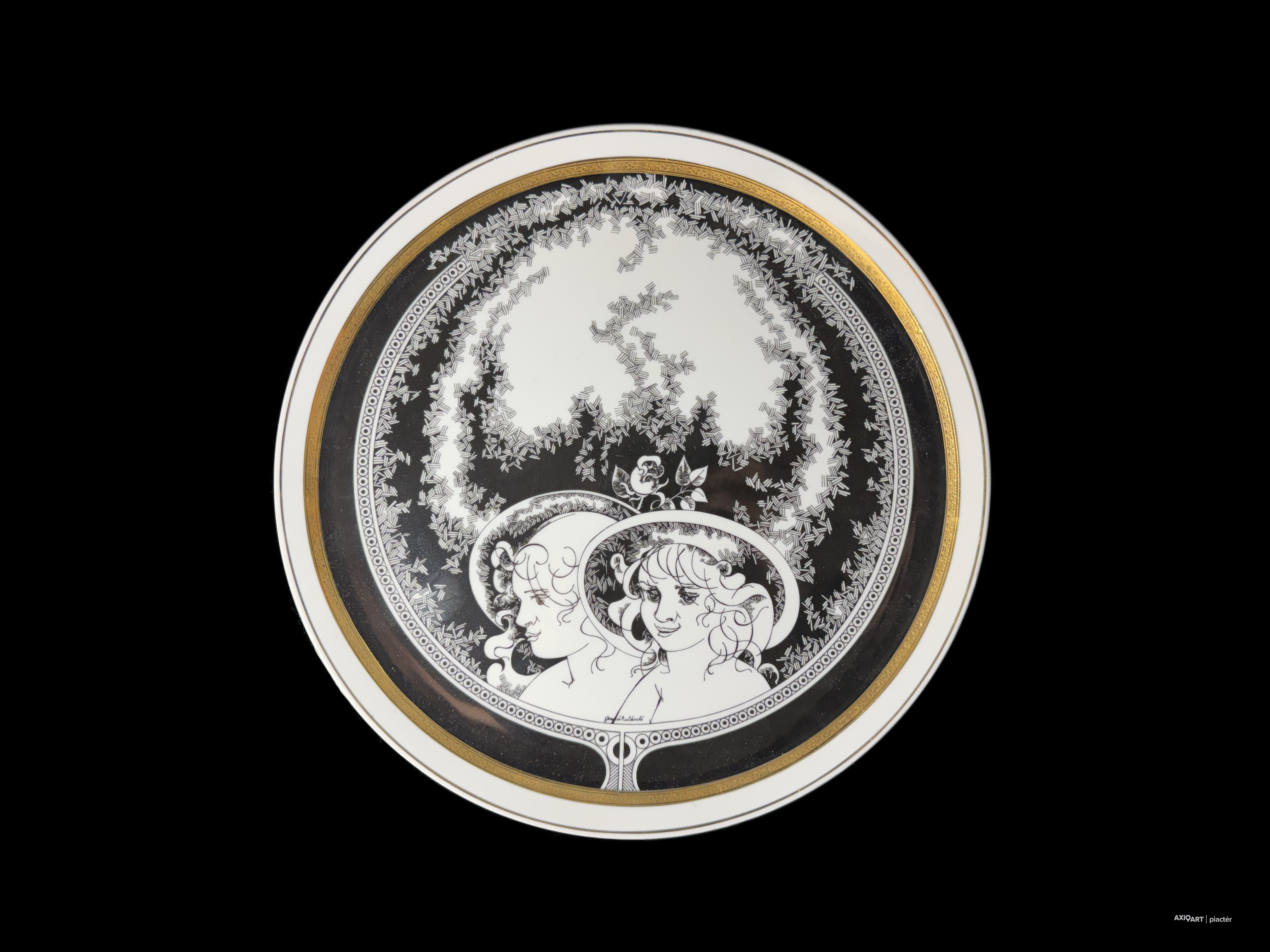 Aranyozott porcelán, XX. század vége, hibátlan, 31 cm átmérő, hátulján jelzett