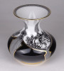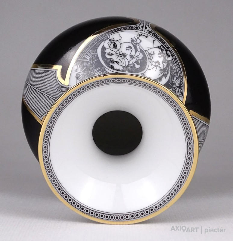 Hibátlan állapotú, jelzett, arannyal gazdagon díszített, fekete-fehér asztali dísz váza.
