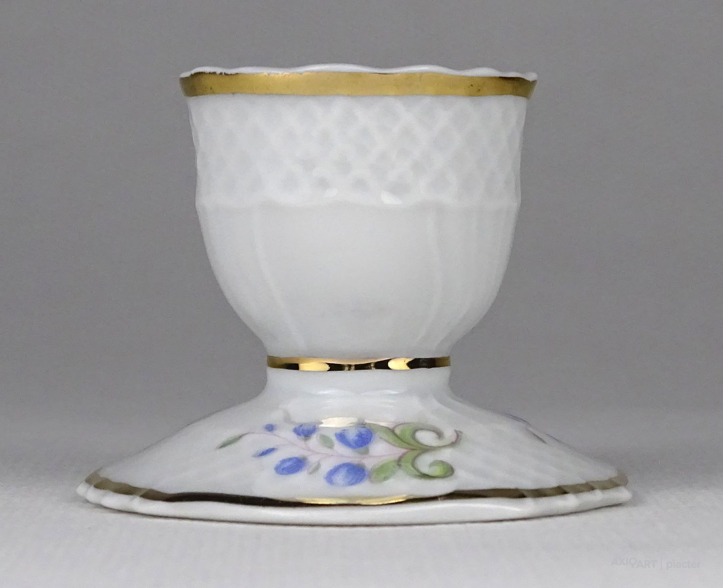 Hibátlan állapotú, kisméretű, alacsony, arany szegéllyel díszített Hollóházi porcelán gyertyatartó.