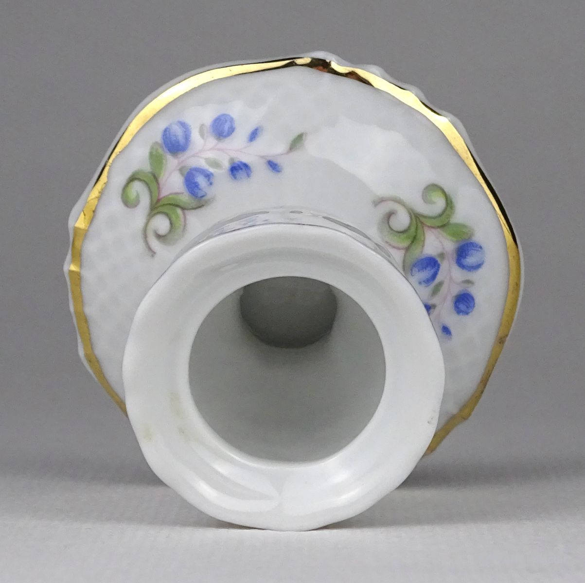[1O085/X011] Hibátlan állapotú, kisméretű, alacsony, arany szegéllyel díszített Hollóházi porcelán gyertyatartó. Alján márkajelzés: HOLLÓHÁZA HUNGARY Magasság: 4.5 cm Szélesség: 5.5 cm Súly: 0.055 kg