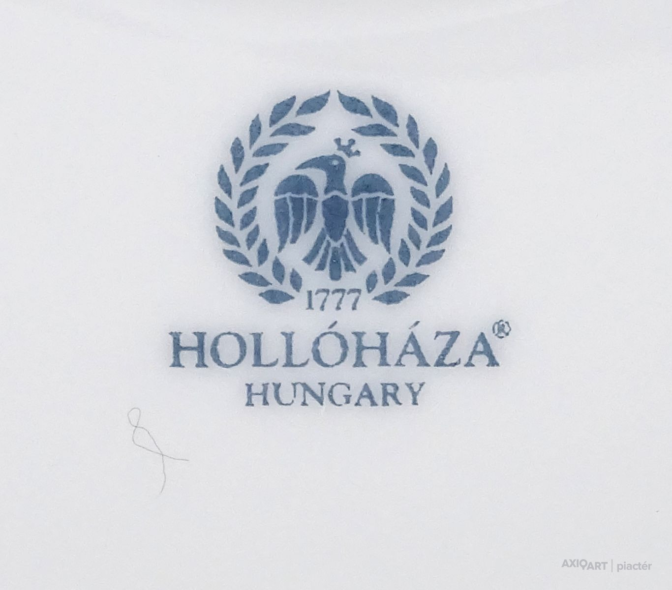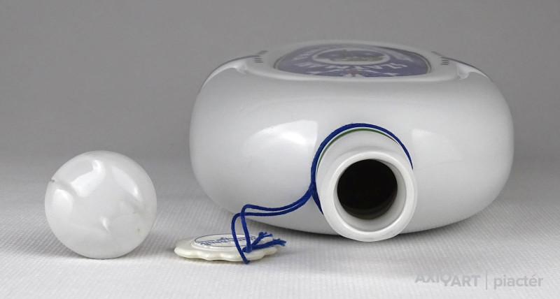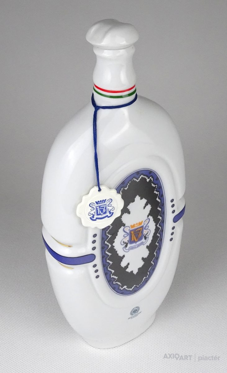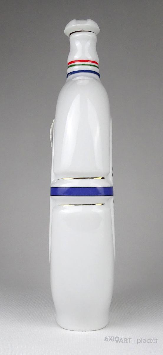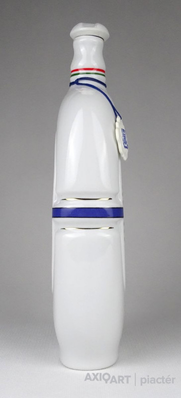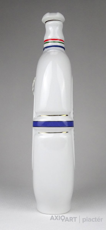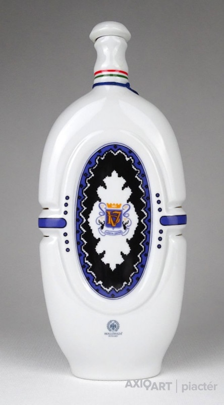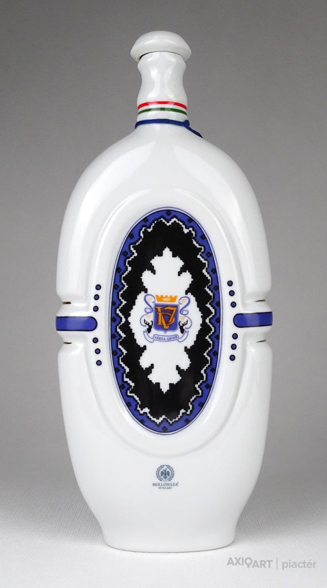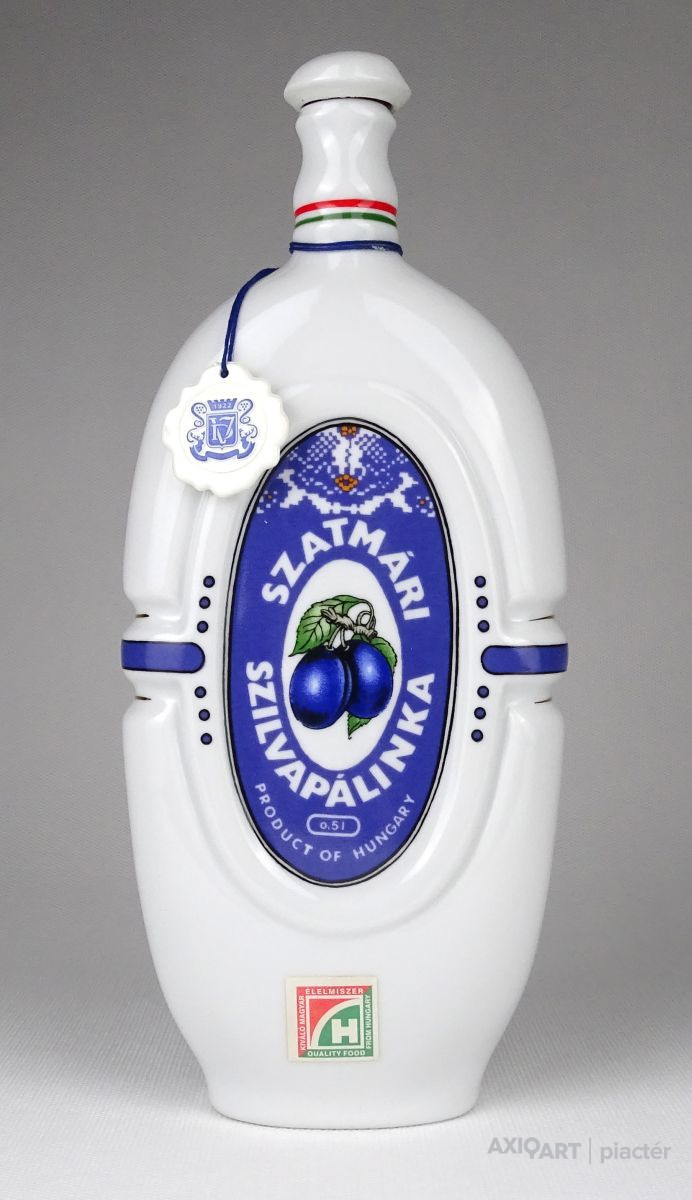 [1O440/X077] Hibátlan állapotú porcelán pálinka kínáló, dugóval. Rajta felirat: SZATMÁRI SZILVAPÁLINKA 0.5L PRODUCT OF HUNGARY VD VÁRDA DRINK Oldalán Hollóházi márkajelzés: HOLLÓHÁZA HUNGARY 1831 Alján jelzés, felirat: SZATMÁRI SZILVAPÁLINKA 44° MSZ MINŐSÉGÉT KORLÁTLAN IDEIG MEGŐRZI Magasság: 25.5 cm Szélesség: 10.5 cm Súly: 0.485 kg