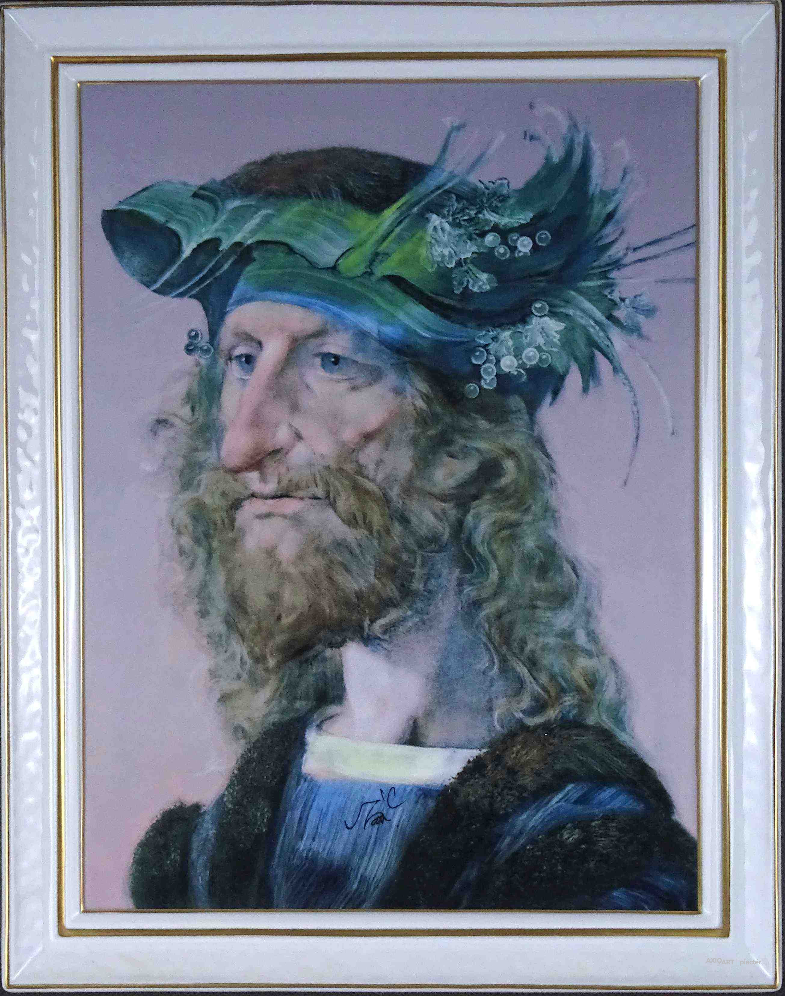 Hibátlan állapotú, valódi arannyal aranyozott, szakállas férfi portrét ábrázoló, Szász Endre hollóházi porcelán falikép. Falra akasztási lehetőséggel rendelkezik.