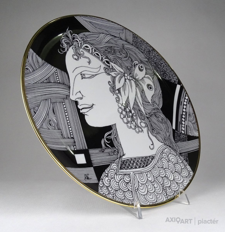 Hollóházi Szász Endre 1979 porcelán dísztál falitál 31 cm