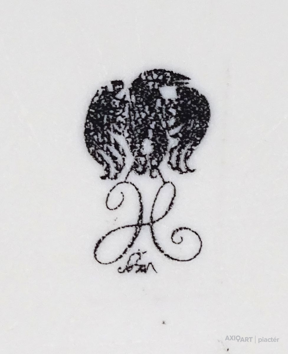 Alján I. osztályú Hollóházi madaras márkajelzés és szignó található. Ez a jelzés 1979-1980 között volt használatban.