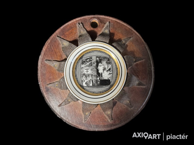 Hollóházi, Szász Endre - Fali tányér bőr keretben