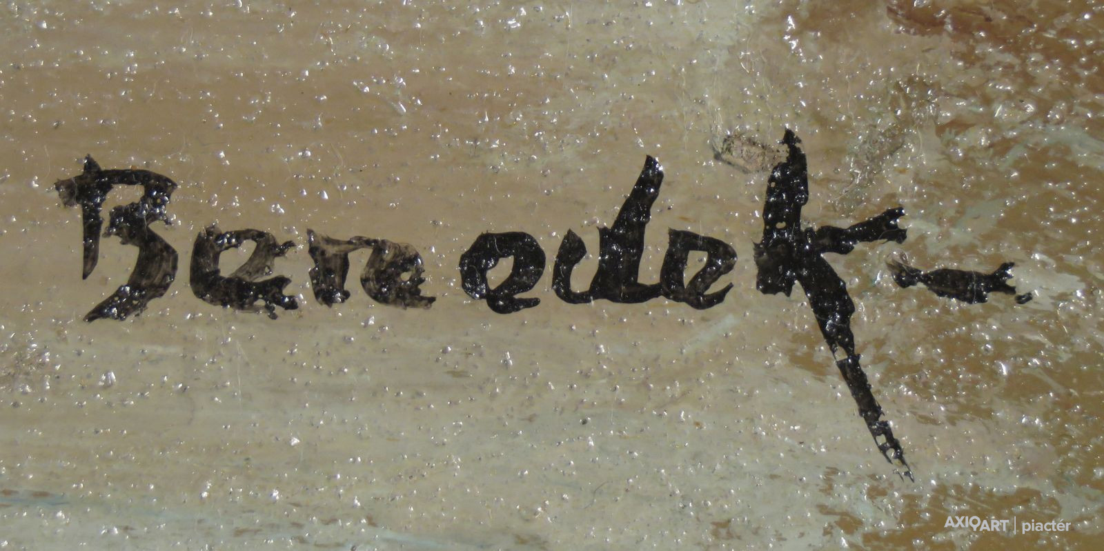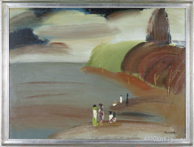 [FKC571/Bp5/58] A kép mérete: 60 x 80 cm keret nélkül. Készült: Olaj, Farost A kép Id. Benedek Jenő (Kecskemét, 1906, Budapest, 1987) alkotása. Jelezve jobbra lent "Benedek" A festmény jó állapotban van. Keret: Ép A festmény hátoldalán a Képcsarnok Vállalat raglapja látható. Magyar festők és grafikusok életrajzi lexikona I-II. Festő. Tanulmányait a kecskeméti művésztelepen Révész Imre mellett kezdte. 1927-32 a Képzőművészeti Főiskolán Benkhard Ágost tanítványa volt. Olasz- és Németországban járt tanulmányúton. Hosszabb ideig Szolnokon rajztanárként dolgozott, s az itteni művésztelepen tevékenykedett. 1953-tól a fővárosi Képző- és Iparművészeti Gimnázium tanáraként dolgozott. 1928-tól rendszeresen szerepelt hazai és külföldi kiállításokon élet- és tájképeivel. 1944-ben, 1948-ban és 1958-ban gyűjteményes kiállítása volt. 1932-ben életnagyságú aktjáért a Szinyei-fiatalok díját kapta. 1950-ben Munkácsy-díjjal, 1952-ben Kossuth-díjjal tüntették ki. A korai alkotások ikonos elfogódottságát, a későbbiek színpadiasságát a festői megismerés gyötrelmesen szép munkája váltotta fel, megtalálva az igazi derű forrását. Több műve a Magyar Nemzeti Galéria tulajdona. (ML, MÉ, Műv. 1966/5) Magyar festők és grafikusok életrajzi lexikona I-II. Műgyűjtők és kereskedők kézikönyve Festő. Tanulmányait a kecskeméti művésztelepen Révész Imre mellett kezdte. 1927-32 k. a Képzőművészeti Főiskolán Benkhard Ágost tanítványa volt. Olasz- és Németországban járt tanulmányúton. Hosszabb ideig Szolnokon rajztanárként dolgozott, s az itteni művésztelepen tevékenykedett. 1953-tól a fővárosi Képző- és Iparművészeti Gimnázium tanáraként dolgozott. 1928-tól rendszeresen szerepelt hazai és külföldi kiállításokon élet- és tájképeivel. 1944-ben, 1948-ban és 1958-ban gyűjteményes kiállítása volt. 1932-ben életnagyságú aktjáért a Szinyei-fiatalok díját kapta. 1950-ben Munkácsy-díjjal, 1952-ben Kossuth-díjjal tüntették ki. A korai alkotások ikonos elfogódottságát, a későbbiek színpadiasságát a festői megismerés gyötrelmesen szép munkája váltotta fel, megtalálva az igazi derű forrását. Több műve a MNG tulajdona. (ML, MÉ, Műv. - 1966/5) Magyar festők és grafikusok adattára Festészeti tanulmányait Kecskeméten, Révész Imre vezetésével kezdte, majd 1927-1932-ig Benkhard Ágost növendéke volt a bp-i Képzőművészeti Főiskolán. A harmincas években hosszabb időt töltött Olasz- és Németországban, később Romániában, Bulgáriában, Ausztriában és az NDK-ban járt tanulmányúton. 1945 után egy ideig a szolnoki művésztelepen dolgozott, majd a Művészeti Gimnáziumban volt rajztanár. 1928 óta kiállító művész, 1944-ben az Ernst Múzeumban, 1948-ban a Fényes Adolf Teremben, 1958-ban a Nemzeti Szalonban, 1972-ben Zalaegerszegen, 1977-ben a Csók Galériában volt gyűjteményes kiállítása. 1950-ben Munkácsy-, 1952-ben Kossuth-díjat kapott. - Derűs, optimista hangú élet- és tájképek festője. A közérthető, valósághű előadásmód sommázott formaadással, ragyogó fény- és színellentétekkel párosul művészetében. - Irod.: P. Sz. T.: Művész életrajzok. Bp. 1985. Művészeti lexikon I-IV. Festő, Kossuth- és Munkácsy-díjas. 1927-től 1932-ig a Képzőművészeti Főiskolán Benkhard Ágost tanítványa volt. Olaszo.-ban és Németo-ban járt tanulmányúton. Hosszabb ideig Szolnokon rajztanárként működött. 1944-ben, 1948-ban és 1958-ban gyűjt. kiállítása volt. Életképeivel, tájképeivel 1928 óta rendszeresen szerepel bel- és külföldi kiállításokon. Művészetét az életkép modern útja lehetőségének keresése jellemzi. 1953 óta a Képző- és Iparművészeti Gimnázium tanára. A Nemz. Gal. több művét őrzi. Csap Erzsébet Kortárs magyar művészeti lexikon I-III. 1932: MKF, mesterei: Révész Imre, Benkhard Ágost. 1950: Munkácsy-díj; 1952: Kossuth-díj; 1984: a Művészeti Alap Nívódíja; 1986: a Magyar Népköztársaság Csillagrendje. A szolnoki művésztelepen élt 1944-től 53-ig. 1953-tól nyugalomba vonulásáig, 1966-ig a bp.-i Képző- és Iparművészeti Gimn. tanára volt. Festői szemléletét alapvetően meghatározta a mesterétől, Benkhard Ágosttól átvett nagybányai szellemiség, és bizonyos mértékig a kompozíciók életképszerű gazdagítása. Hosszabb németországi és olaszországi tanulmányútjain megismerte és festői munkamódszerébe beépítette az expresszionizmus festékkezelését és a novecento neoklasszicista kiegyensúlyozottságát, de hatott rá az olasz metafizikus festészet is, bár inkább a képszerkesztésben, mint gondolatiságban. A 30-as, 40-es években egyszerűbb figurális és tájképeket készített (Vöröshajú akt c. festményét 1930-ban Szinyei Társaság kiállításán kitüntető oklevéllel jutalmazták). A festői felfogásból következően szakmai engedmények nélkül festett szocialista-realista tematikájú kompozíciókat (A magyar katona a szabadságért című tárlata egy öreg és egy fiatal partizánt ábrázoló képet festett, lesállásban, meglepő perspektivikus rövidülésbe szerkesztve a két figurát). A 60-as években színskálája keményebb, kontrasztosabb lett, a realista tónusokat és reflexeket egy hidegebb árnyalatú, szigorúbban szerkesztett festészettel váltotta föl; mintegy újból eszköztárba vonva a neoklasszicista és expresszív elemeket. Élete utolsó éveiben sokalakos, szürrealisztikus hangulatú, néhány apró színkontraszttal élénkített, de maturális látványt nyújtó tájképekkel jelentkezett. Ek: 1926: Kecskemét; 1944: Ernst M.; 1948: Fényes A. T.; Tisza Szálló, Szolnok; 1958: Nemzeti Szalon; 1961: Villamos és Kábelgyár Kultúrháza, Bp.; 1972: Képcsarnok, Zalaegerszeg; 1977: Csók G., Bács-Kiskun MM