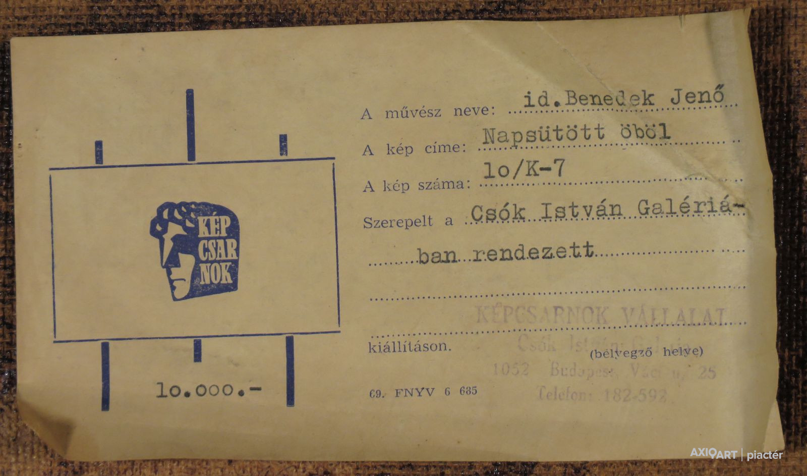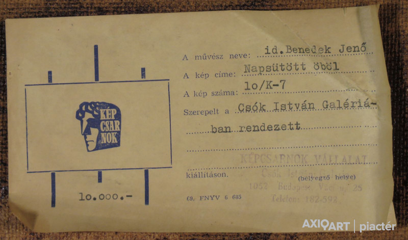A festmény hátoldalán a Képcsarnok Vállalat raglapja látható.