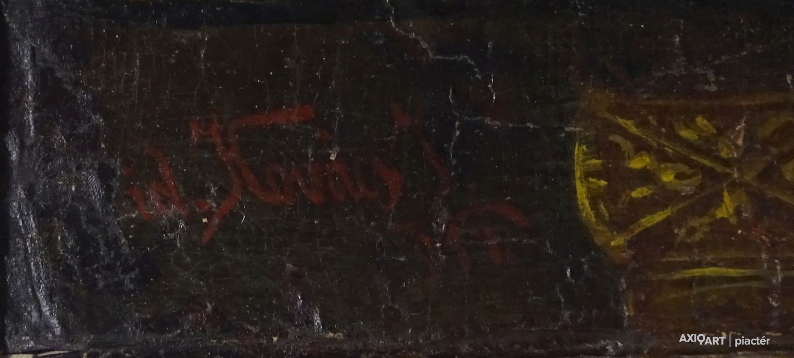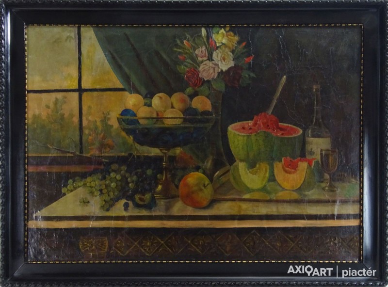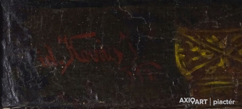 [FK0037/Z018] A kép mérete: 50 x 70 cm keret nélkül. Készült: Olaj, Vászon A kép Paizs László (Szentpéterúr, 1935) alkotása. Jelezve Jobbra lent "P. L." A festmény jó állapotban van. Keret: Ép A festmény hátoldalán a Képcsarnokvállalat címkéje található. Magyar festők és grafikusok életrajzi lexikona I-II. Festő. Tanulmányait a budapesti Iparművészeti Főiskolán végezte 1959-ben. Z. Gács György, Rákosy Zoltán és Szentiványi Lajos növendéke volt. A '60-as évek első felében hagyományosabb felfogású olajképeket festett, mozaikokat, freskókat, utóbb a pop-art körébe tartozó, a francia Arman munkáival rokon műveket alkotott. 1961 óta kiállító művész. Egyéni (Fényes Adolf Terem, Csók Galéria, Műcsarnok, Magyar Nemzeti Galéria, Halászbástya, Bástya Galéria, Vigadó Galéria, Budapest Galéria, Győr, Szombathely, Szeged, Zalaegerszeg, Duisburg, Aix-en-Provence, stb). és vegyes (Ernst Múzeum, Műcsarnok, Óbuda Galéria, Magyar Nemzeti Galéria, Csók Galéria, Vigadó Galéria, Székesfehérvár, Kaposvár, Pécs, Hódmezővásárhely, Firenze, Milano, Padova, Nápoly, Velence, Düsseldorf, Aachen, Genf, stb) tárlatokon vett részt. 1980-ban Munkácsy-díjjal jutalmazták, 1988-ban Érdemes Művész kitüntető elismerésben részesült. Munkáit őrzi a Magyar Nemzeti Galéria, a Fővárosi Képtár, a szombathelyi képtár, a pécsi Janus P. Múzeum, a székesfehérvári István Király Múzeum és a dunaszerdahelyi Kortárs Magyar Galéria. (H.B.: Műv, 1972/4, K.Gy.: Műv. 1977/2, K.G.: Műv. 1978/10, M.L.: Műv, 1983/5, R.G.: Műv, 1987/9, Sz.Gy.: Új Műv. 1995/4, MK) Magyar festők és grafikusok életrajzi lexikona I-II. Műgyűjtők és kereskedők kézikönyve Festő. Tanulmányait a bp.-i Iparművészeti Főiskolán végezte. Mozaikokat ferskókat, utóbb a pop-art körébe tartozó, a francia Arman műveivel rokon műveket alkotott. Mozaikok: a Szegedi Megyei Tanács, a Pécsi Óvoda, a Gödöllői Agrártudományi Egyetem. Freskók: Budapest - Csatárka úti Gyermekotthon. 1971-ben a Fényes Adolf Teremben volt kiállítása, 1983-ban pedig a szegedi Móra Ferenc Múzeumban nagyszabású tárlatokon mutatta be munkáit. 1988-ban érdemes művész kitüntető elismerésben részesült. (MK) Magyar festők és grafikusok adattára Az Iparművészeti Főiskolán végzett 1959-ben. Mozaikokat (Szeged, Megyei Tanács; Pécs, Óvoda; Gödöllő, Agrártudományi Egyetem), freskókat (Budapest, Csatárka úti Gyermekotthon), újabban a pop art körébe tartozó, a francia Arman műveivel rokon műveket alkotott. 1971-ben a Fényes Adolf Teremben nyílt kiállítása. 1983 februárjában a szegedi Móra Ferenc Múzeumban megrendezett nagyszabású tárlaton mutatta be alkotásait. 1988-ban érdemes művész kitüntető elismerésben részesült. - MK Művészeti lexikon I-IV. (Szentpéterur, 1935. dec. 26.- ): festő. Az Iparművészeti Főiskolán 1959-ben végzett Rákosy Zoltán, Z. Gách György és Szentiványi Lajos növendékeként. Épületdiszítő mozaikokat, (Szeged, Megyei Tanács, 1961; Pécs, Óvoda, 1964), műanyagfreskókat (Bp., Csatárka úti Gyermekotthon, 1964) és gobelinterveket készít. Kortárs magyar művészeti lexikon I-III. Festő, szobrász, grafikus. 1959: MIF, mesterei: Z. Gács György, Rákosy Zoltán, Szentiványi Lajos. 1980: Munkácsy-díj; 1988: érdemes művész. Főiskolás éveinek második felében, majd azt követően számos murális munka kivitelezésében vett részt, Fónyi Géza, Konecsni György, Z. Gács György, Rákosi Zoltán és Domanovszky Endre mellett dolgozva. A 60-as évek első felének hagyományosabb fölfogású olajképeket festett. 1964-ben a Velencei B.-n megismerkedett az amerikai pavilonban a pop art Európában akkor még újnak számító törekvésével, és részben ez inspirálta, hogy 1967-ben textil, fém, bőr anyagú "varrottas" képeket küldjön az FKS éves tárlatára; a megnyitó előtt többek között az ő munkáit is eltávolították a falról. A 70-es években pop art-os objekteket (A trónörököspár politikai gyilkosság áldozata lett, 1970, plexiüveg, újság, szarvasbogarak), majd konstruktív, átlátszó plexiüveg plasztikákat készített belső fénytörő határfelületekkel. A 80-as években készültek az anyagában színezett, konstruktív, nagyméretű poliészter szobrai, majd színes poliészter táblaképeket alkotott, mesterségesen roncsolt felületekkel, mintha régészeti leletek vagy atomtámadás utáni festmény-szurrogátumok lennének. Ekkor kezdett organikus plaszikájú bronzszobrokat is mintázni. A 90-es években, a táblaképek és szobrok mellett nagyméretű, egyedi grafikákat készített, formavilágában némileg a roncsolt táblaképekből kiindulva, de szinte kizárólag az emberi alakból elvonatkoztatott torzókat megjelenítve. Ek: 1966: Művészklub, Győr; 1971: Fényes A. T.; 1972: Bercsényi 28-30 G.; 1973: BME B-épület; 1976: Csók G.; 1977: G. Hildebrandt, Duisburg (NSZK); 1979: Bástya G., Halászbástya; Helyőrségi Műv. H., Nagyatád; József A. Műv. Közp., Szeged; Göcsej M., Zalaegerszeg; 1982: Bezzegh G., Küsnacht (CH); 1983: Móra F. M., Szeged; 1987: Műcsarnok (kat.); MNG; 1988: Pandora G., Badacsonytomaj; 1989: Parktheatter, Iserlohn (NSZK); Qualitas G.; Hevesi S. Színház, Zalaegerszeg; 1990: Vasarely Fondation (Ferdinánd Judittal, Fóth Ernővel), Aix-en-Provence (FR); 1994: Vigadó G.; 1997: Pest Center G.; 1998: Budapest G. (kat.); 1999: Pest Center G. (kat); G. Arcis, Sárvár; MMA, Bp.; 2001: SZK, Szhely; Ernst M. (kat.) Vcsk: 1961, 1964, 1966: FKS, Ernst M.; 1962: 9. Magyar Képzőműv. kiállítás, Műcsarnok; 1967: Mai magyar festészet, Új-Delhi; 1969: Vas megyei művészek, Savaria M., Szhely; V. Orsz. Grafikai B., Miskolc; 1971: Új művek, Műcsarnok; 1972: Fiatal művészek Budapestről. Likovni Salon, Újvidék (YU); 1972, 1973: Balatonboglár