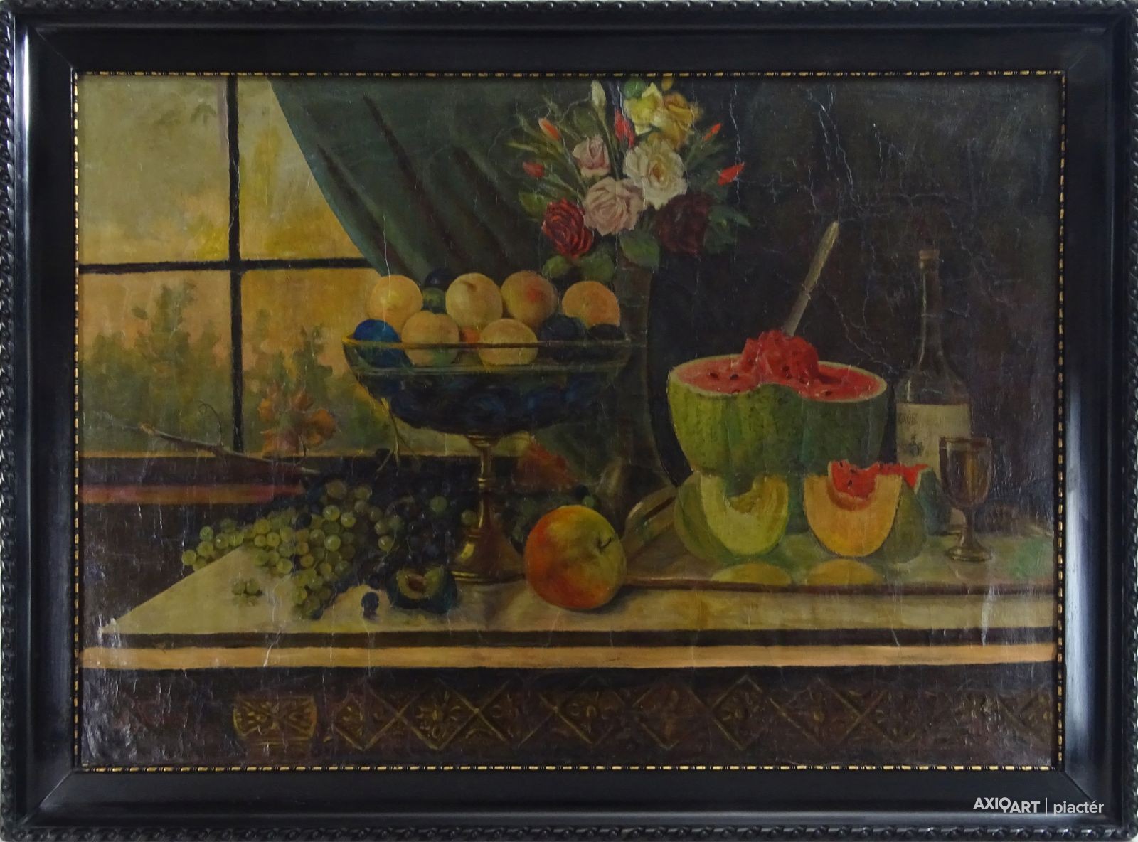 Olaj vászon festmény, régi fekete keretben.