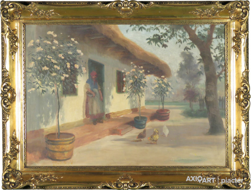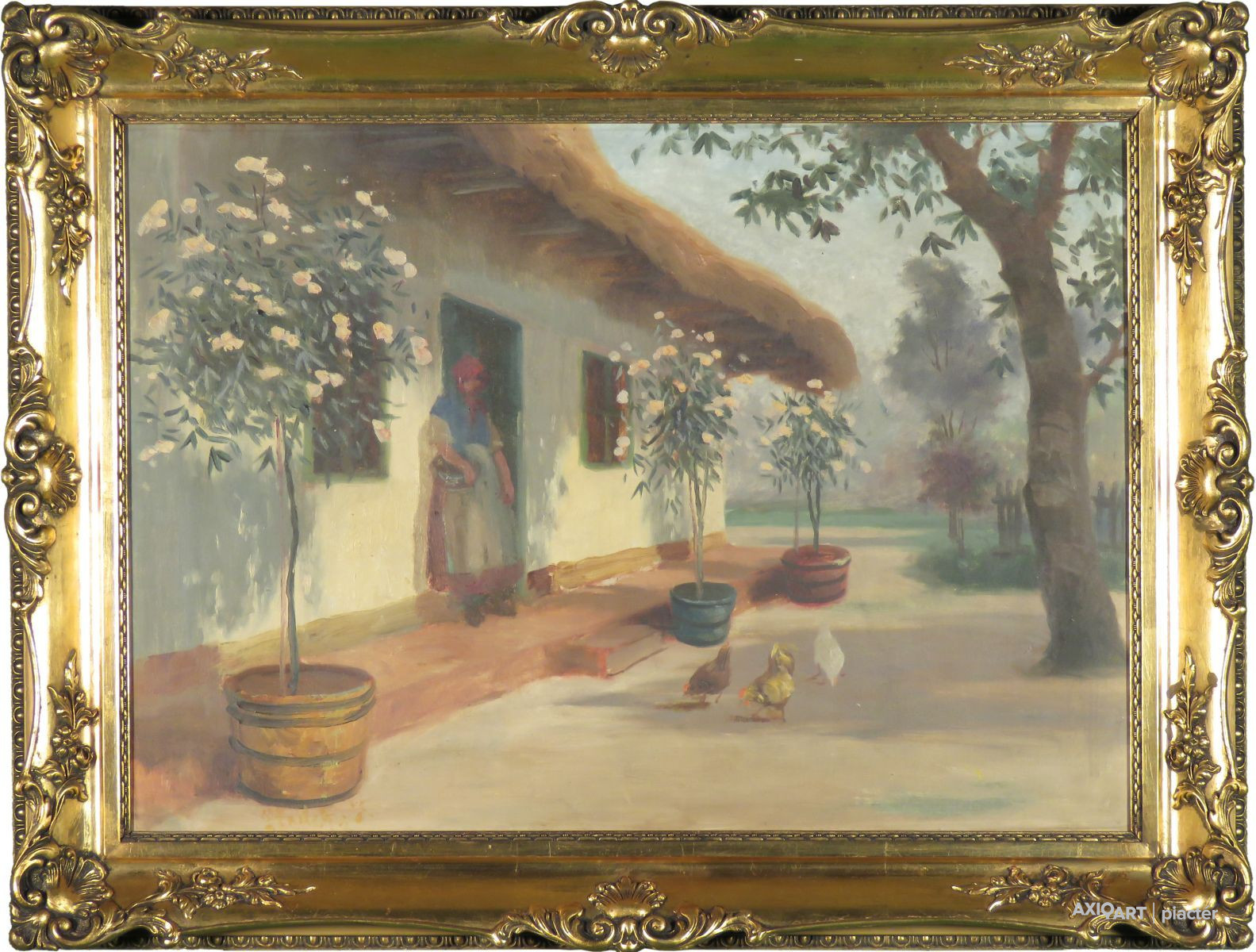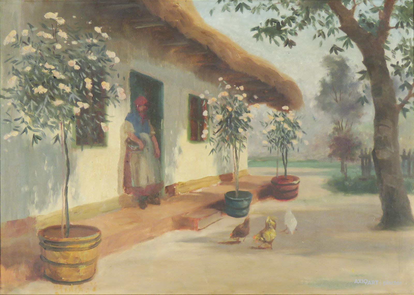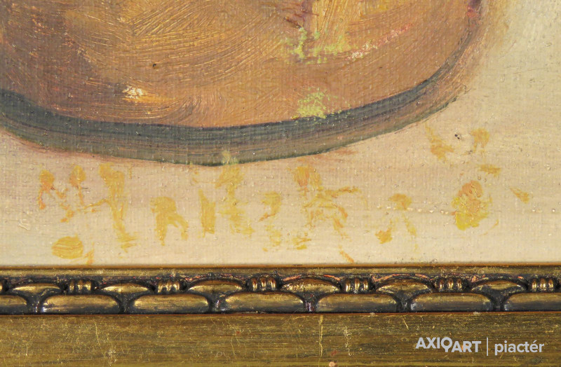 [FK2668/Bp301/4] A kép mérete: 50,5 x 80,5 cm keret nélkül. Készült: Olaj, Vászon A kép Moldován István (Kolozsvár, 1911) alkotása. Jelezve Jobbra lent "Moldován István" A festmény jó állapotban van. Keret: Ép A festmény hátoldalán a Képcsarnokvállalat raglapja láltható. Magyar festők és grafikusok életrajzi lexikona I-II. Festő. Tanulmányait Kolozsvárott, a Szépművészeti Főiskolán kezdte 1930-ban. A következő esztendőben a nagybányai Szépművészeti Iskolában Thorma János és Krizsán János korrektúráján képezte magát. 1931-ben a budapesti Képzőművészeti Főiskola hallgatója lett. Réti István, később Szőnyi István volt a mestere. Már mint főiskolás sok díjat és kitüntetést nyert. 1948-ban megkapta a római ösztöndíjat, de lemondva róla, Erdélybe ment. 1948-1950 között Erdélyben élt, és népművészetben gazdag vidékein festett. 1943-ban Kolozsvárott, 1946-ban Gyöngyösön, 1955-ben, 1959-ben és 1962-ben a Kulturális Kapcsolatok Intézetében, illetve a Csók Galériában rendezett egyéni bemutatókat. Ezen kívül több Európai országban, az USA-ban, Kanadában és Indiában is bemutatta munkáit. Eleinte sajátos atmoszférájú, lírai tájképeket, eleven színvilágú képmásokat festett, később mondernebb, erőteljesebben szerkesztett művekkel jelentkezett. A Pécsi Tanárképző Főiskola számára mozaikot készített. Erdély szerelmese volt. A székely népművészet gazdag formavilágának hatása döntő jelentőségűvé vált sokoldalú művészetében. Műv. díjak: a Szinyei Társaság elismerő oklevele, a Főváros festészeti-díja, "Kolozsvár a képzőművészetben" II. díj, állami ösztöndíj, római ösztöndíj, a Képzőművészek Szövetsége Észak-Magyarországi festészeti díja, SZOT festészeti díj. Több murális művet (mozaik) alkotott. A Magyar Nemzeti Galéria több alkotását őrzi. (M. L.: Műv. 1967/6, RI-NM) Magyar festők és grafikusok életrajzi lexikona I-II. Műgyűjtők és kereskedők kézikönyve Festő. Tanulmányait a kolozsvári Szépművészeti Főiskolán kezdte 1930-ban. A nagybányai szabadiskolában is megfordult. Itt Thorma János és Krizsán János korrektúráján képezte magát. 1931-ben Budapesten a Képzőművészeti Főiskola hallgatója lett. Réti István, később Szőnyi István volt a mestere. Már mint főiskolás sok díjat nyert. 1948-ban megkapta a római ösztöndíjat, de lemondva róla, Erdélybe ment. 1948-1950 k. Erdélyben élt, és népművészetben gazdag vidékein festett. 1943-ban Kolozsváron, 1946-ban Gyöngyösön, 1955-ben, 1959-ben és 1962-ben a Kulturális Kapcsolatok Intézetében, illetve a Csók Galériában rendezett önálló kiállítást. Ezen kívül több Európai országban, az USA-ban, Kanadában és Indiában is bemutatta műveit. Eleinte sajátos atmoszférájú, lírai tájképeket, eleven színvilágú képmásokat festett, később mondernebb, erőteljesebben szerkesztett művekkel jelentkezett. A Pécsi Tanárképző Főiskola számára mozaikot készített. Erdély szerelmese volt. A székely népművészet gazdag formavilágának hatása döntő jelentőségűvé vált sokoldalú művészetében. 1942-ben megkapta a Szinyei Társaság elismerését, és a Főváros festészeti-díjat,1943-ban elnyerte a "Kolozsvár a képzőművészetben" c. díjat. 1947-ben állami ösztöndíjat,1948-ban a római ösztöndíjat, 1972-ben a Képzőművészek Szövetsége Észak-Magyarországi festészeti díját kapta meg. A MNG több művét őrzi. (M. L.: Műv.-1976/6) Magyar festők és grafikusok adattára Tanulmányait Kolozsvárott a Képzőművészeti Főiskolán, majd Nagybányán Thorma János és Krizsán János irányítása mellett kezdte, 1931-től Budapesten megszakításokkal a Képzőművészeti Főiskolán Réti István és Szőnyi István növendékeként fejezte be. 1949-ben és 1950-ben ösztöndíjjal dolgozott Erdélyben, majd hosszú tanulmányutakra indult Nyugat-Európába, az Egyesült Államokba, s a Szovjetunióba. Először Kolozsvárott lépett a nyilvánosság elé 1943-ban, majd 1946-ban Egerben és Gyöngyösön, 1947-ben Miskolcon, 1948-ban Hatvanban, 1955, 1961 és 1981-ben a Csók Galériában, 1959-ben a KKI-ben, 1960-ban Nagykanizsán, 1963-ban Kiskunfélegyházán, 1966-ban Debrecenben, 1969 és 1975-ben Békéscsabán, 1971-ben a Mednyánszky Teremben, 1973-ban Gyöngyösön és Debrecenben, 1977-ben Egerben, 1979-ben Veszprémben, 1983-ban Miskolcon, 1984-ben Csepelen, 1986-ban a Vigadó Galériában rendezett önálló kiállítást. Külföldi kiállításai: Moszkva, Varsó, India, Szófia, Párizs, Bukarest, Belgrád, New York, Montreál és Toronto. Eddig közel kétezer színes táblaképet festett, de szívesen foglalkozik mozaikkészítéssel is. 1964-ben a Pécsi Pedagógiai Főiskola, 1968-ban a Salgótarjáni Kórház, 1969-ben a názáreti templom és 1970-ben a Videoton Vállalat díszterme részére mozaikot készített. - Erdély szerelmese. A székely népművészet gazdag formavilágának hatása döntő jelentőségűvé vált festészetében. Olyan formanyelvet alakított ki magának, amely színvilágában és summázó formaalakításában sajátos erdélyi zamat érződik, ugyanakkor korszerűen modern is konstruktivista stílusa. Munkásságát 1942-ben a Szinyei Társaság elismerésével és a Fővárosi festészeti-díjjal, 1943-ben Római-ösztöndíjjal, 1947-ben Állam ösztöndíjjal (Románai), 1963-ben a SZOT festészeti-díjával, 1972-ben a Képzőművészek Szövetsége Észak-Magyarországi festészeti-díjával tüntették ki. - Irod.: Bíró Béla: Kolozsváry Moldován István. Erdélyi Helikon, 1943.; Felvinczi Takács Zoltán: Kolozsváry Moldován István. Kolozsvár, 1943.; Dutka Mária: Magyar Nemzet, 1961.; Maksay László: Moldován István. Művészet, 1965.; D. Fehér Zsuzsa. Moldován István, Bp. 1971.; Theisler G