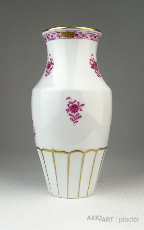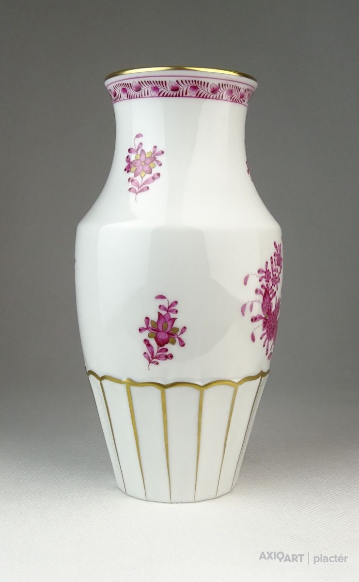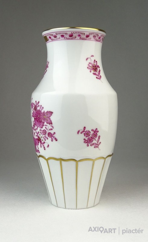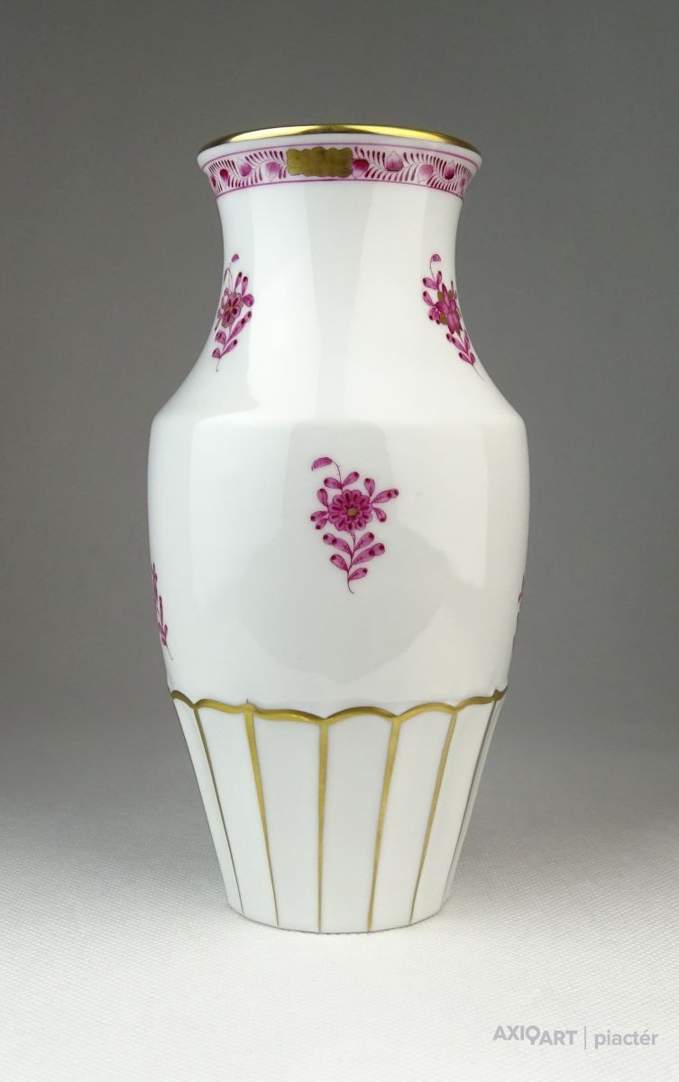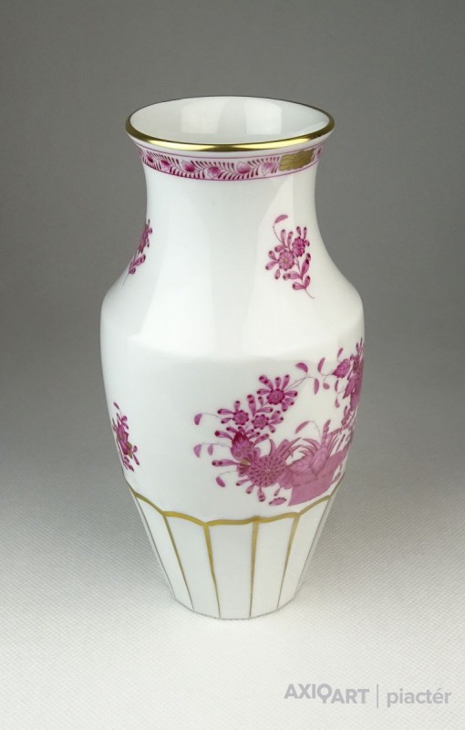 Hibátlan állapotú, lila indiai kosaras mintával díszített (Fleurs des Indes) Herendi porcelán váza.