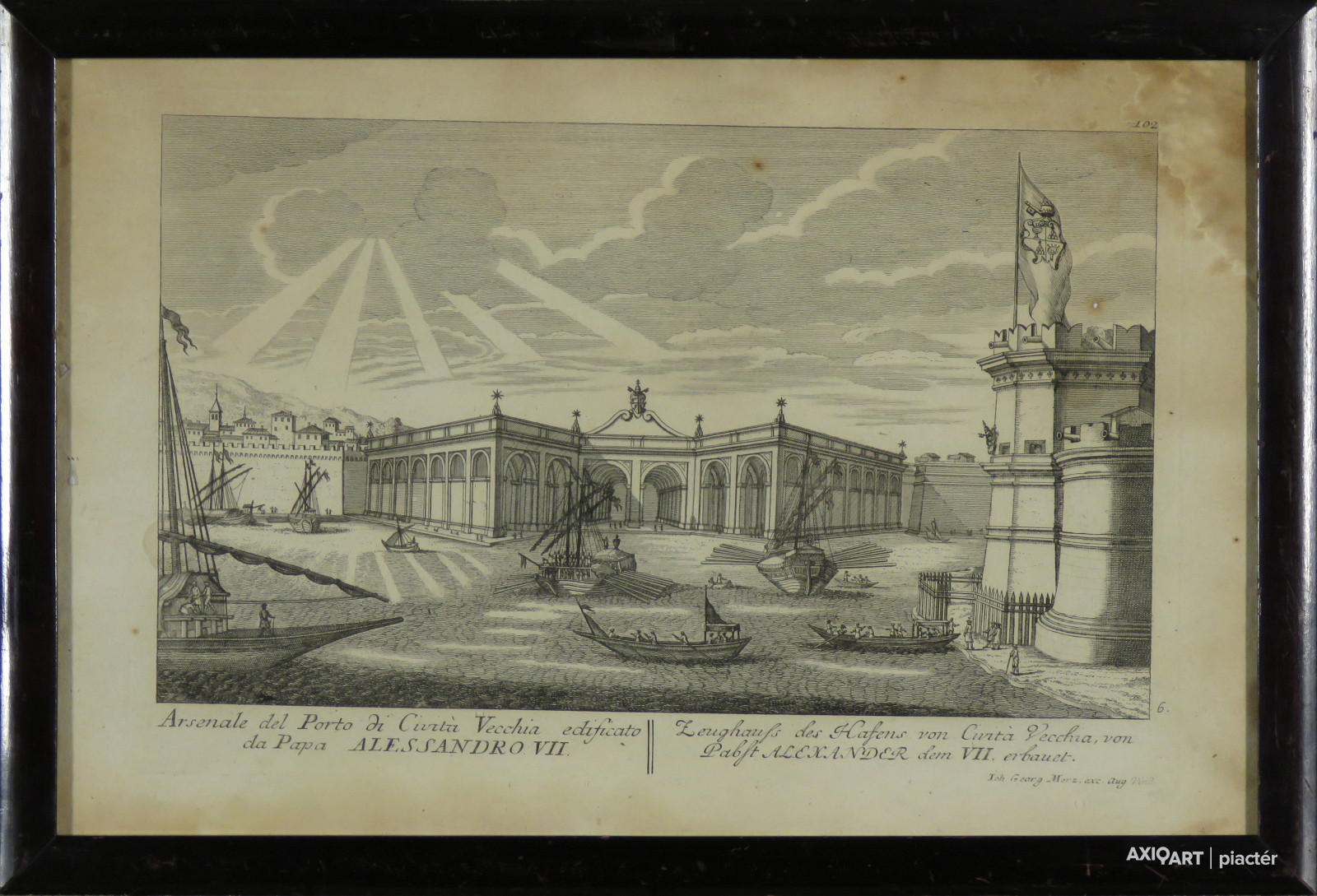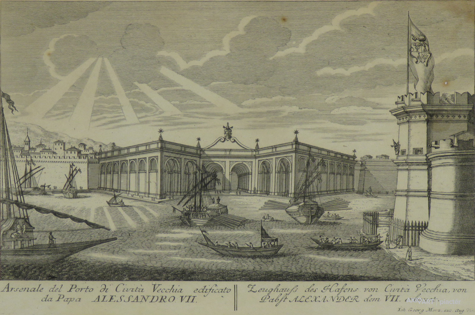 IOH Georg Merz és Aug. Vind : Falda-Rossi: Civitavecchia kikötőjének arzenálja, melyet VII. Sándor pápa építtetett (1665)