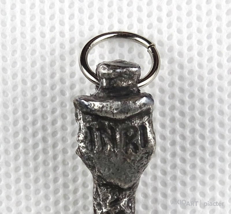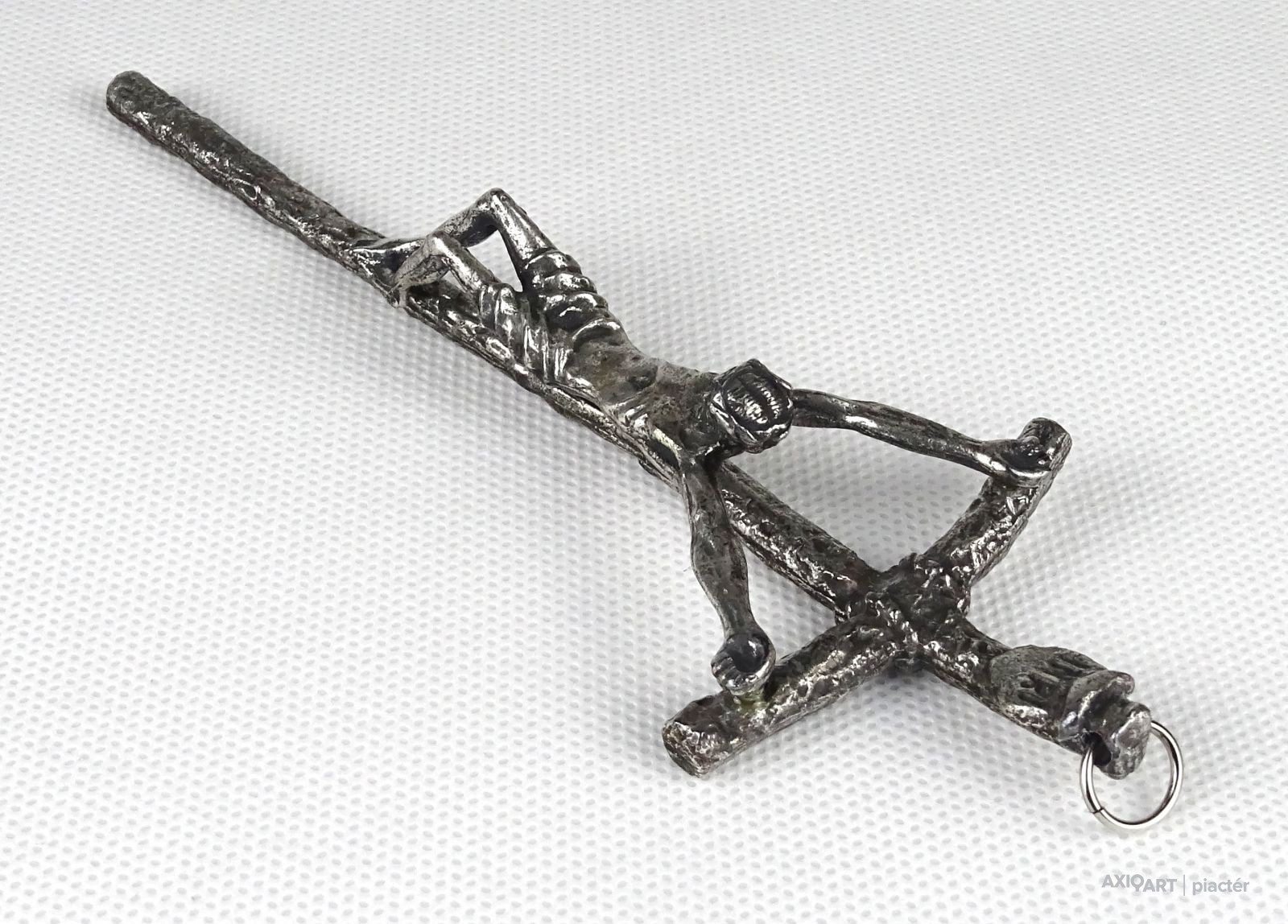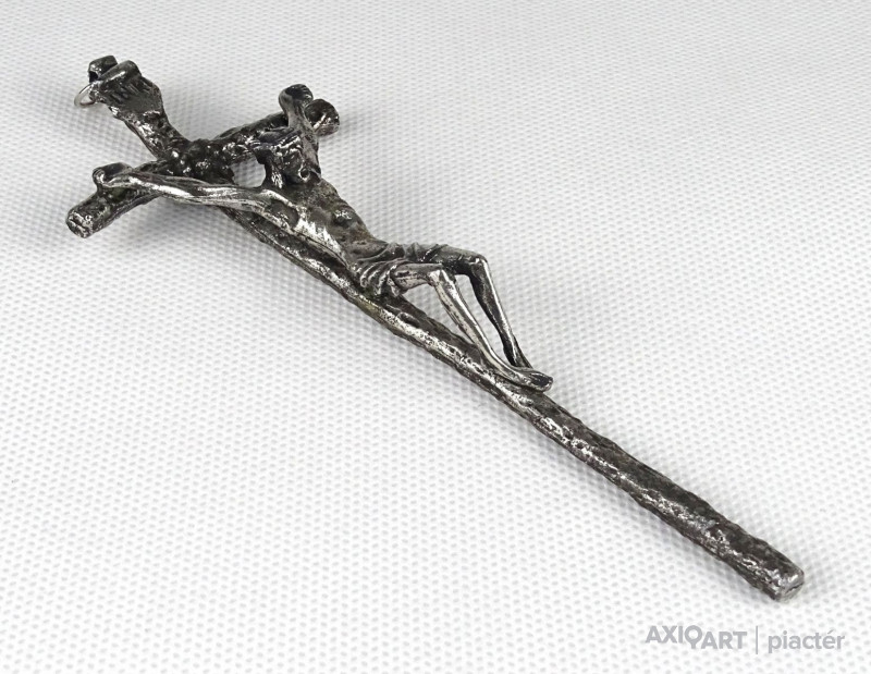 [1J336/X118] Hibátlan állapotú, modern iparművészeti fém feszület, vallási kegytárgy. Falra akasztási lehetőséggel rendelkezik. Felirat: INRI Magasság: 14.5 cm Szélesség: 5.2 cm Súly: 0.07 kg