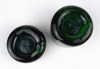[1O660/X102] Hibátlan állapotú zöld színű fújt üveg gyertyatartó, mécsestartó pár. Alján címke, rajta felirat: IDEA IPARMŰVÉSZETI VÁLLALAT Súly: 0.32 kg
