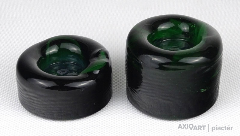Iparművészeti IDEA zöld fújt üveg gyertyatartó pár