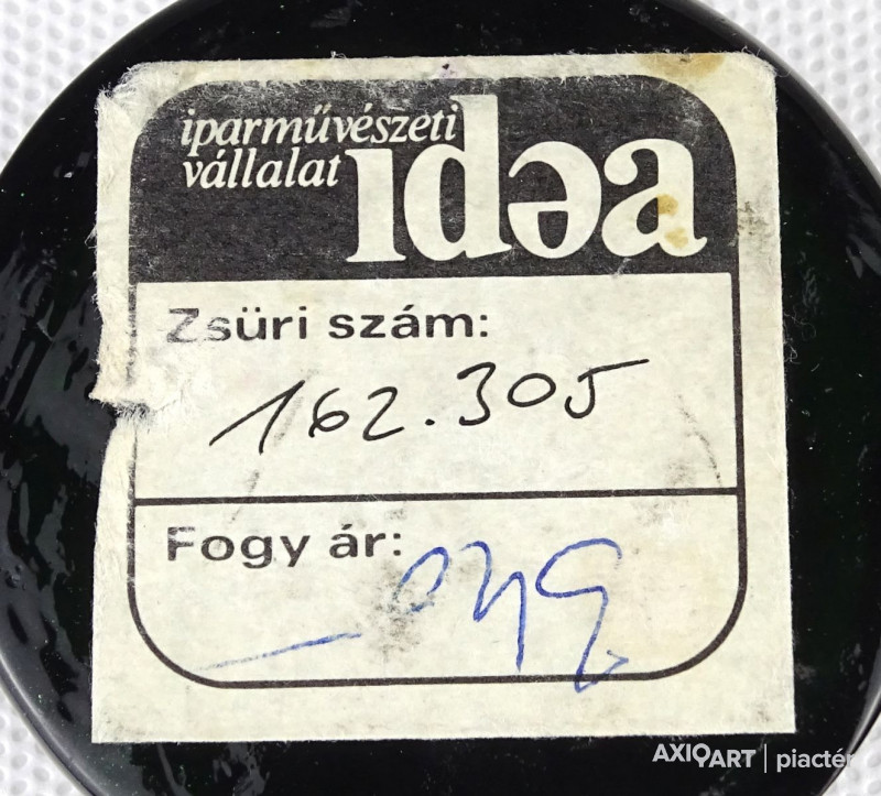 [1O212/Z046] Hibátlan állapotú, színezett fúvott üveg váza, talpas üveg váza vagy üveg kupa. Skandináv design üveg. Talpán a fúvás szakítás nyoma szépen kivehető. Magasság: 14 cm Szélesség: 6.5 cm Súly: 0.215 kg Erik Höglund  Ugrás a navigációhozUgrás a kereséshez A papról (1902–1971) lásd Erik Höglund (pap) . Erik Höglund Született 1932. január 31. Karlskrona , Blekinge megye Halál 1998. január 27. (65 éves) Maria Magdalena plébánia , Stockholm Állampolgárság svéd Foglalkozás/megbízás Tervező, művész Ismert Tervezés Koszta Boda számára Feleség Maerit Levin (sz. 1953–1967; elvált) Ingrid Höglund (sz. 1974–1998; halála) Partner Monica Backström (partner 1968-1972) Rokonok Anna Höglund (lánya) Erika Höglund (lánya) Albin Höglund (fia)  Erik Sylvester Höglund , 1932. január 31-én született Karlskronában , 1998. január 27-én halt meg a stockholmi Maria Magdalena plébánián , svéd szobrász , festő , grafikus és üvegművész . Életrajz  Erik Höglund Torsten Höglund és Jenny Jonsson könyvelő fia, valamint Tore Enar Höglund szobrász és grafikus öccse volt . Tanulmányait a stockholmi Konstfackban végezte , először dekorfestészetet Fritz Sjöströmnek , majd szobrászatot Robert Nilssonnak , végül 1951–1952-ben Harald Sallbergnek grafikát . Erik Rosén , a Boda Üveggyár 1953 és 1973 között dolgozó tervezője fogadta be , és ez idő alatt jött el, hogy átalakítsa a svéd műüveggyártást az üvegtermékek kinézetére vonatkozó új ötletek bevezetésével. Ösztöndíja többek között metszetekkel kapcsolatban, a színek és a földes, aszimmetrikus dizájn sikeres lett a külpiacon. Bodán töltött ideje alatt fenyővel, vasalással és bútorokkal is foglalkozott. Később más üveggyárakkal is együttműködött, például a Pukeberggel , a Lindshammarral és a Studioglas Strömbergshyttannal . 1968-ban Monica Backström üvegművésszel megalapította a Backström & Höglund Design AB formatervező céget, amely bútorok, háztartási eszközök és használati tárgyak tervezésével foglalkozik. Höglund tagja volt a Vet Hut AB-nek is, amelyet 1971-ben alapított a Boda glasbruk tíz tervezője szokásos munkájuk mellett: Erik Höglund, Monica Backström, Ann Wolff , Göran Wärff , Bertil Vallien , Ulrica Hydman-Vallien , Per Arne. Lundahl, Liselotte Jörgensdotter, Gunhild Sinnemark és Rolf Sinnemark . Erik Höglund szobrászként számos köztéri dekorációt készített különféle anyagokból, köztük téglából és betonból. Ezt követően gyakran dolgozott együtt olyan építészekkel, mint Jon Höjer a Höjer & Ljungqvistnél , Bengt Gate és Lars Ågren .  Kiállítás  A stockholmi Palmcrantzska gyárban korábban Ulf G. Lindén állandó kiállítása volt Erik Höglund alkotásaival. Ezt a gyűjteményt 2009 szeptemberében a karlskronai Blekinge Múzeumnak adományozták.  Közművek válogatásban  Két állat és egy játék (1966), gránit, Bredängs Torg Stockholmban. Fiskargumman a karlskronai halpiacon. Négyzet alakú oszlop Gävle-ben Erik Höglund mintegy 150 köztéri dekorációt készített üvegből, bronzból, kovácsolásból, téglából, gránitból és betonból. Kerékpárosok I (1956), bronz, a trelleborgi oktatási intézmény Kerékpárosok II (1957), bronz, a karlskogai oktatási intézmény Kerékpárosok III (1957), bronz, stockholmi Hökarängens iskola Az élő szó (1958), festmény a nybrói városi könyvtárban Kerékpárosok IV (1958), bronz, Handverkstorget Sandvikenben Kerékpárosok V (1959), Sjöboskolan, Borås Falfestmény üvegablak (1962) a borgholmi templomban Kristallglasskogen (1964), üvegmozaik fal, Ellagårdsskolan Täby községben A tudás fája (1966), vasműves és üveg, Folkets Hus Nybroban Állatszobrok (1964-67), gránit, Hallsberg Két állat és egy játék (1966), gránit, Bredängs torg Stockholmban Tó szökőkúttal (1967), gránit, Trelleborg Ülő terhes nő (1971), bronz, Haganässkolan Älmhultban Hajó halászokkal (1972), vas, üveg és fa, Hotel Witt Kalmarban Négyzet alakú oszlop (1971-74), beton, Stortorget Gävle -ben A súlyemelő (1974), bronz, az östersundi sportcsarnok Gyűrűk a vízen (1976-77), bronz, Rödeby Torg , Karlskrona önkormányzat Az élet játéka , tégladomborműves fal és régi érmék , üveg, mindkettő 1979–1980, Sparbanken Linköpingben Úszók (1980), kovácsoltvas, úszócsarnok Rödebyben , Karlskrona önkormányzat Cirkuszgömb (1980-81), kovácsoltvas, Kristianstad megyei tanács Fiskargumman (1981-82), bronz, halpiac Karlskronában Az olvasócsalád (1983), bronz és üveg, Kalmár Városi Könyvtár Életmentő (1985), réz, úszócsarnok Haganässkolanban Älmhultban Dans bort i vägen (1985), bronz, Torsås volt Anya és gyermeke , bronz, Trelleborg A büszke apa és Két ember , bronz, Eskadern lakónegyed Linköpingben Játssz szobrot téglából, Lönneberga óvoda, Norra Fäladen Lundban  Forrás: wikipédia