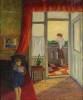 [FKC876/Bp92/46] A kép mérete: 100 x 81 cm keret nélkül. Készült: Olaj, Vászon A kép Ujváry Ignác (Pest, 1860, Kisoroszi, 1927) alkotása. Jelezve balra lent "Újváry I." A festmény jó állapotban van. Keret: Ép Magyar festők és grafikusok életrajzi lexikona I-II. Festő. Budapesten Lotz Károly mellett, a Benczúr-mesteriskolában, majd Münchenben és Párizsban tanult. Eleinte nagyobb kompozíciókkal szerepelt a fővárosi tárlatokon (Szent István szentté avatása), később visszavonulva Kisorosziba, erőteljes, friss tájfestményekkel lépett fel (virágos rét, Eresz alatt, stb.). 1928-ban a Műcsarnokban hagyatéki kiállítást rendeztek műveiből. Tanára volt a budapesti Iparművészeti Iskolának. Több díjat kapott. 1891-ben a Rökk-díjat, 1894-ben a Műbarátok-díját, 1895-ben pedig az Ipoly-díjat nyerte. Tagja volt a Magyar Képzőművészek Egyesületének. Néhány munkája a Magyar Nemzeti Galéria tulajdona. (Éber, ML, VNML) Magyar festők és grafikusok életrajzi lexikona I-II. Műgyűjtők és kereskedők kézikönyve Festő. Budapesten Lotz Károly mellett, a Benczúr-mesteriskolában, Münchenben és Párizsban tanult. Eleinte nagyobb kompozíciókkal szerepelt (Szent István szentté avatása), majd visszavonulván Kisorosziba, erőteljes, friss tájképekkel lépett fel. Tanára volt a fővárosi Iparművészeti Iskolának. 1891-ben Rökk-díjat, 1894-ben a Műbarátok díját, 1895-ben az Ipoly-díjat nyerte. Néhány képe a MNG tulajdona. (Éber) Művészeti lexikon I-II. Festő, szül. Budapest 1860. szept. 20. U. o. végezte tanulmányait s eleinte nagyobb kompozíciókkal szerepelt (Szent István szentté avatása), később visszavonulván Kisorosziba, erőteljes, friss tájképekkel lépett fel (Virágos rét, Eresz alatt). Tanára az Iparművészeti Iskolának. Művészeti lexikon I-IV. Festő. Bp.-en Lotz Károly tanítványaként, majd a Benczúr-mesteriskolában, később Münchenben és Párizsban végezte tanulmányait. Eleinte nagyobb kompozíciókkal szerepelt a bp.-i tárlatokon (Sz. István szentté avatása), később Kisorosziba visszavonulva erőteljes ecsetkezelésű, friss tájképeit állította ki. Több művésszel együtt részt vett a Feszty-körkép festésében. Az Iparművészeti Iskola tanára volt. Számos díjat nyert. Néhány képét a Nemz. Gal. őrzi. 1928-ban a Műcsarnok hagyatéki kiállítást rendezett műveiből. Magyar festők és grafikusok adattára Korai képei nagyobb történelmi kompozíciók, legjobb művei azonban Kisorosziban festett tájai. 1928-ban rendezték meg hagyatéki kiállítását a Műcsarnokban. Zsellérudvar, Őszi est, Hajóépítés a Dunaparton c. munkáit a Magyar Nemzeti Galéria őrzi. - Irod.: Lyka Károly: Ujváry Ignác, Magyar Művészet, 1927.