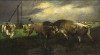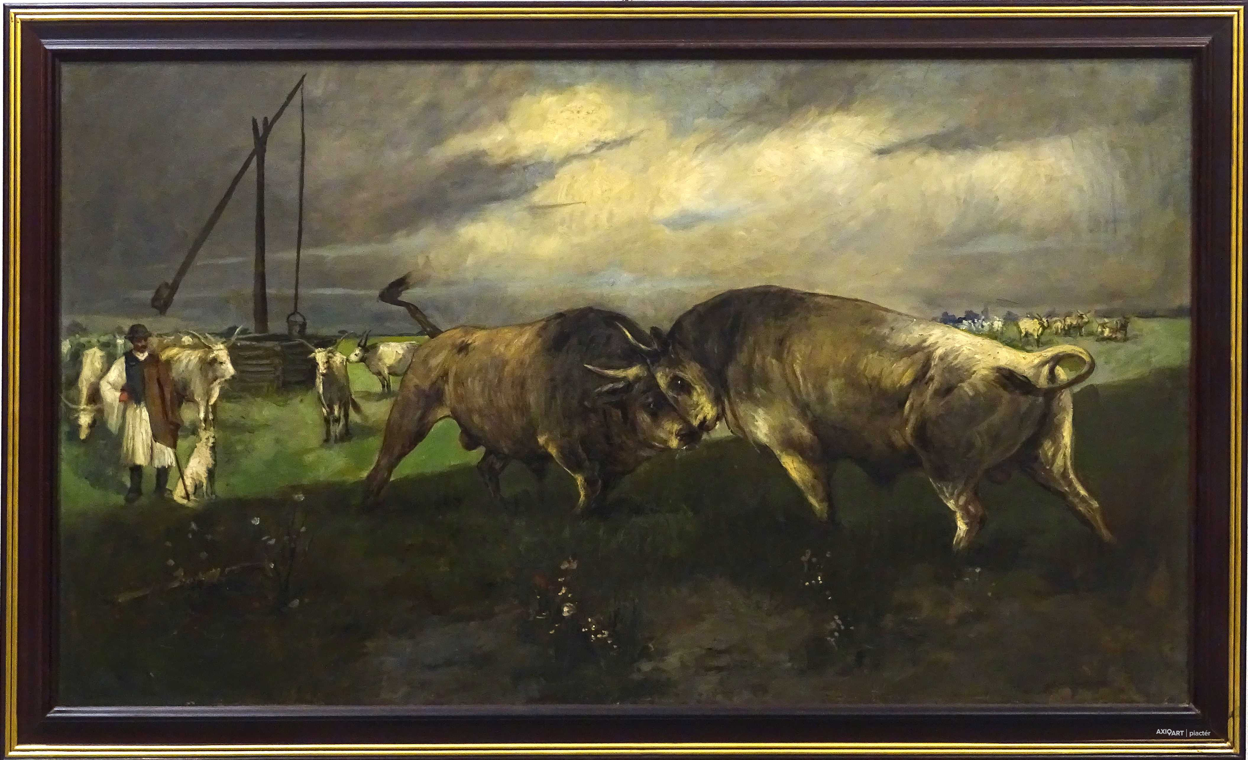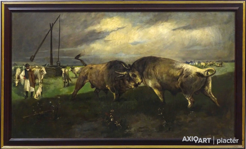 Ismeretlen festő: Bikák harca 140.5 x 80 cm