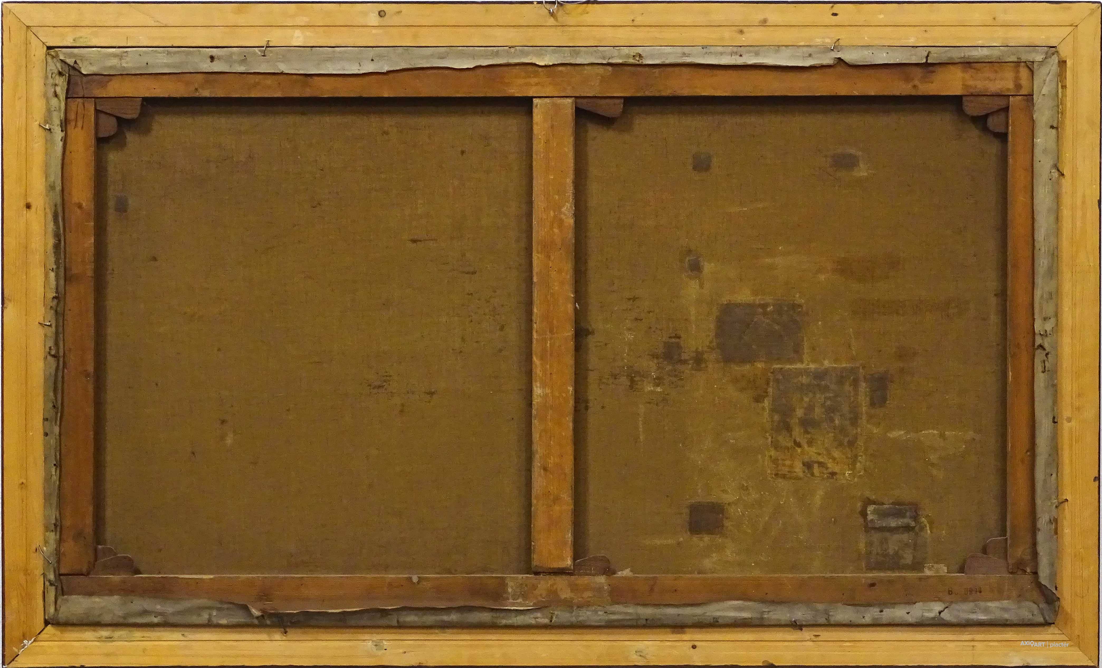 [1V018/X280] Régi, hatalmas méretű, jelzetlen olaj-vászon festmény barna színű vágható keretben. Magasság: 93.5 cm Szélesség: 154 cm Súly: 5.8 kg